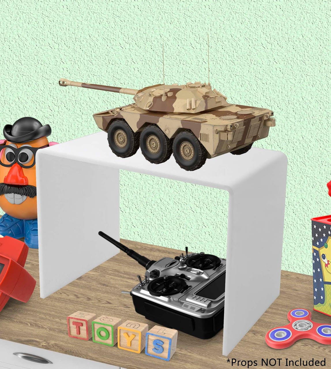 Looking for a durable and elegant means to display your prized merchandise? Our acrylic long U-Shaped Risers are effective at displaying and showcasing products to create eye-catching displays your customers canβt resist! These acrylic display risers create a sturdy platform to showcase a variety of products and merchandise.