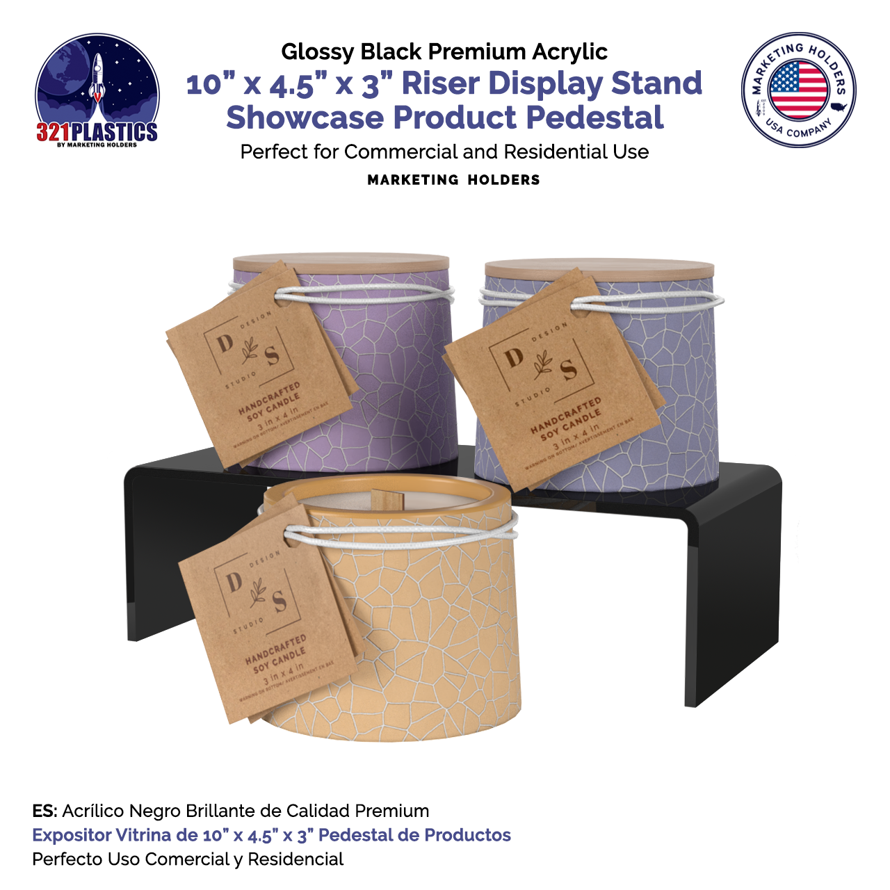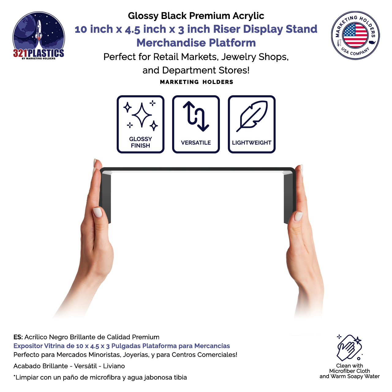 Black Acrylic Display Riser 10β Long Showcase Retail Stand