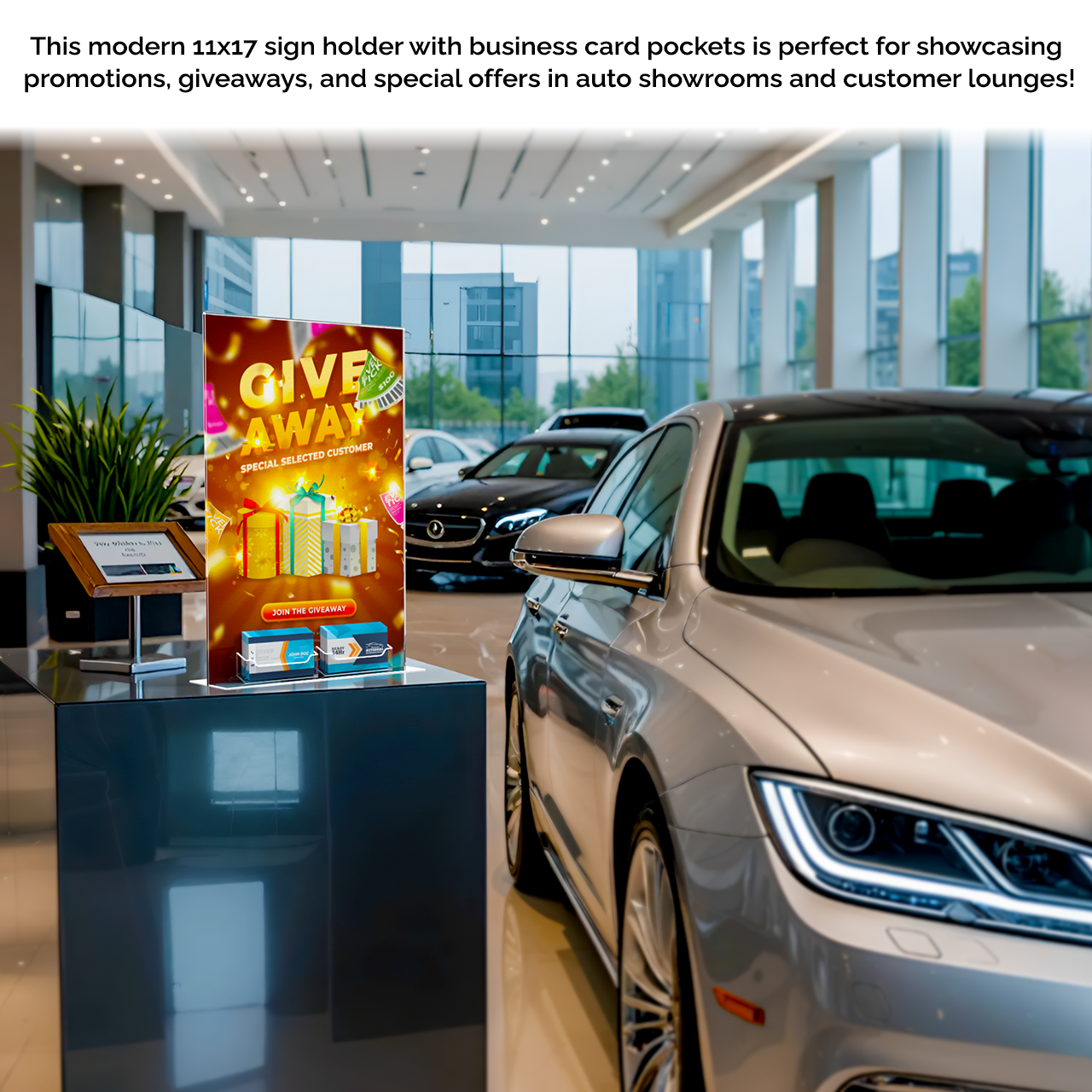 11"W x 17"H Sign Frame Bottom Load Advertisement Holder with 2 Business Card Pockets