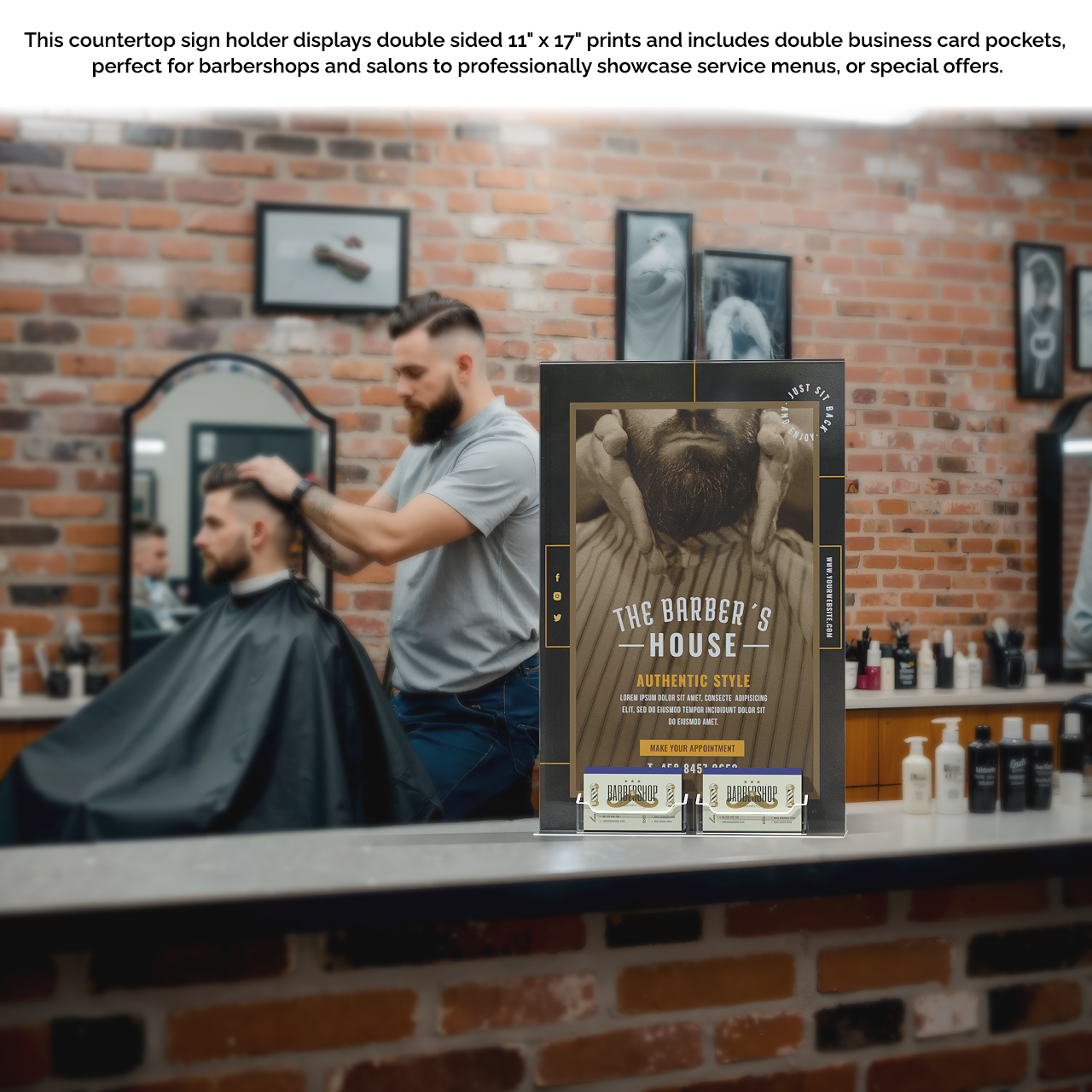 - Tabletop Sign Holder Frame with 2 Business Card Pockets