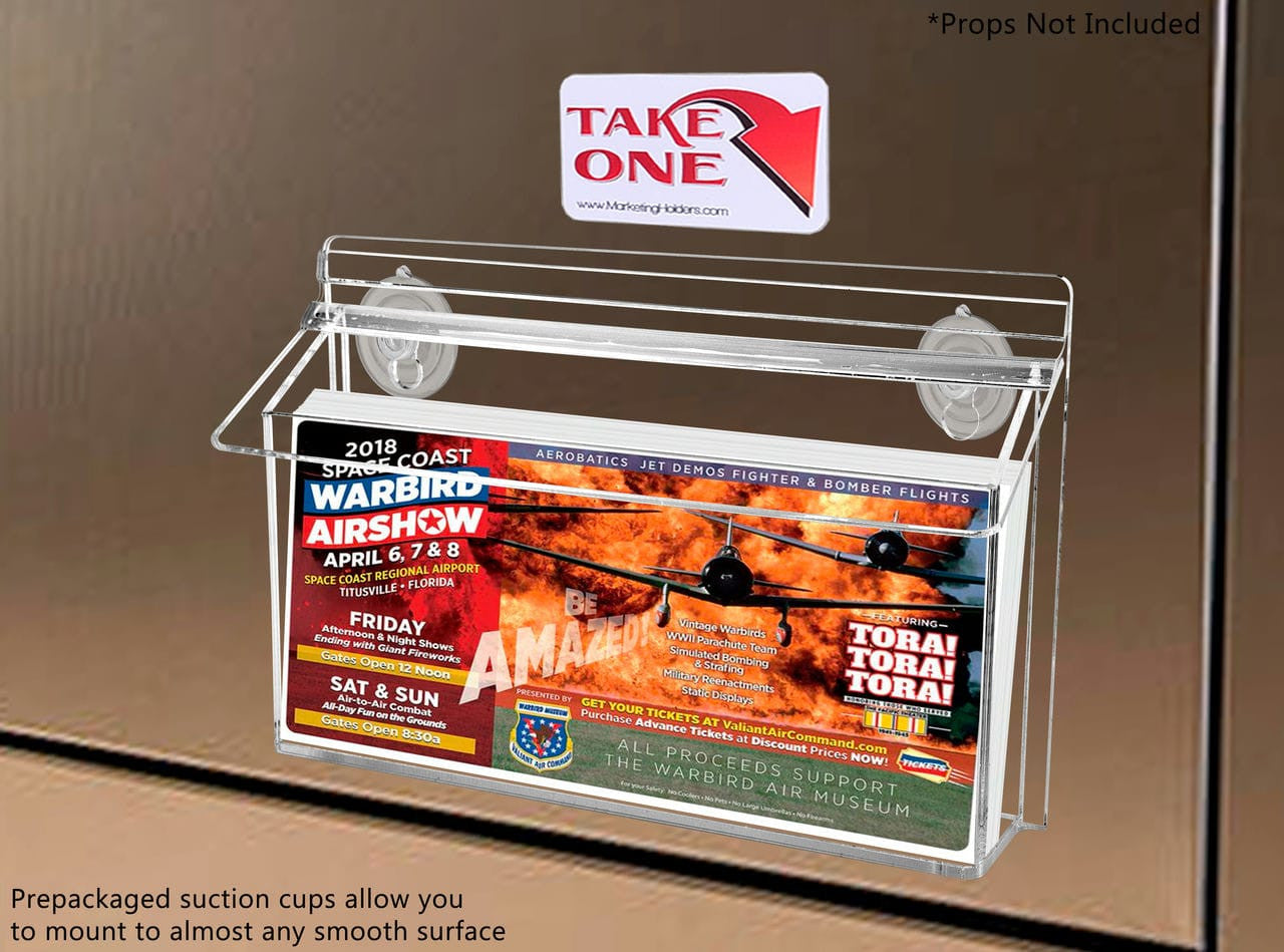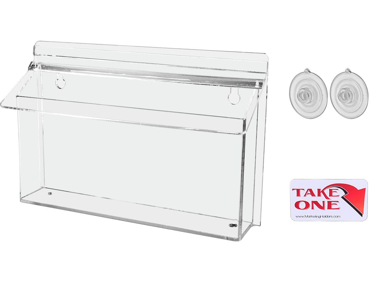 - Includes: Outdoor brochure holder with lid, suction cups and “Take One” sticker