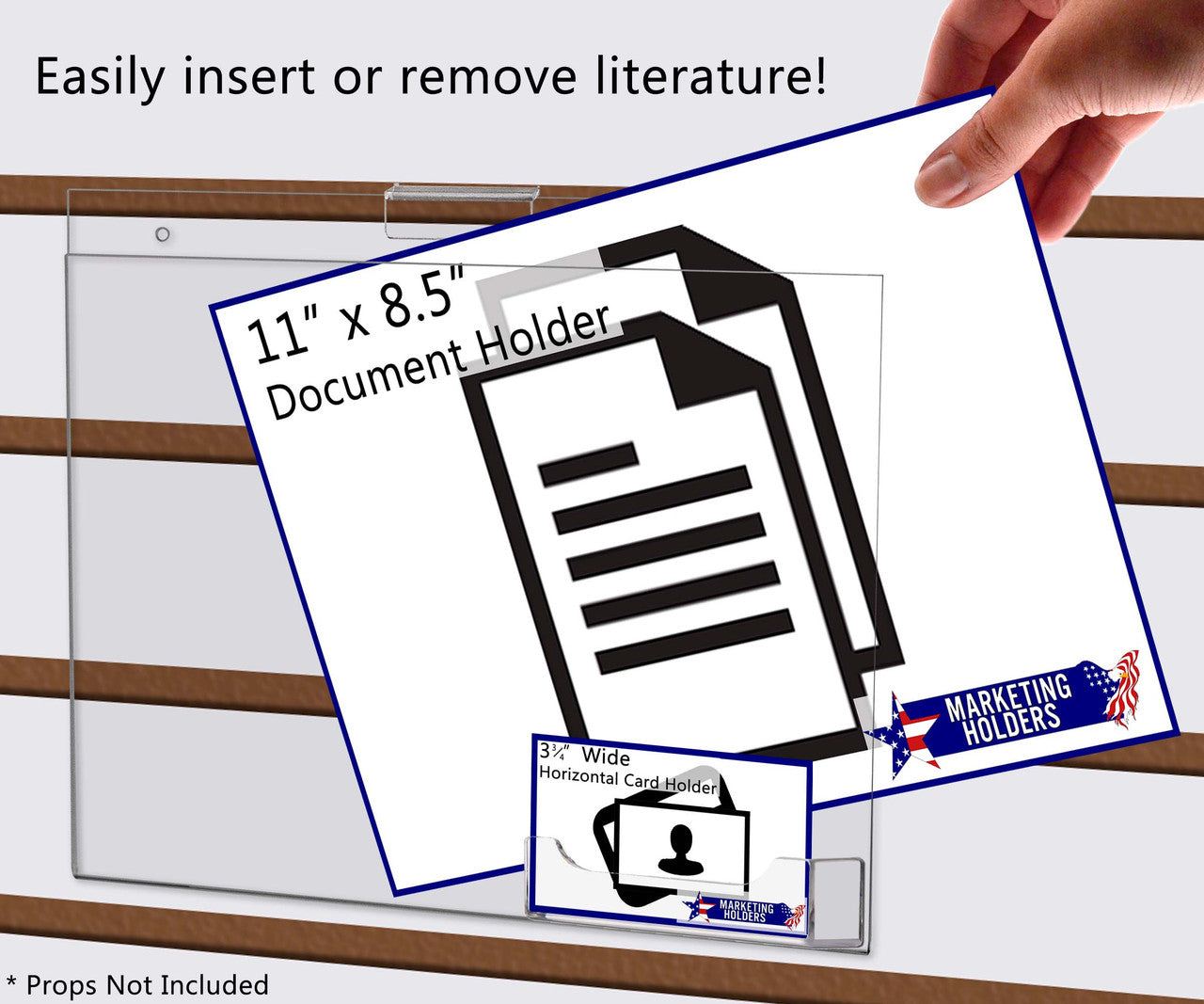 - Holds 11"W x 8.5"H literature and 3.5"W standard business cards