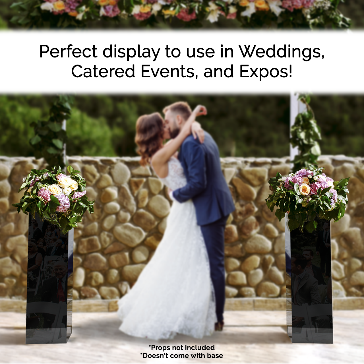 These multi-purpose lucite plastic boxes are perfect for weddings and events. These displays have been purchased for use as flower towers, photograph risers for bridal and baby showers, birthday parties, celebrations of life or memorial events, tradeshows and expos. Perfect for use as holiday decor, DIY projects and podium style displays.