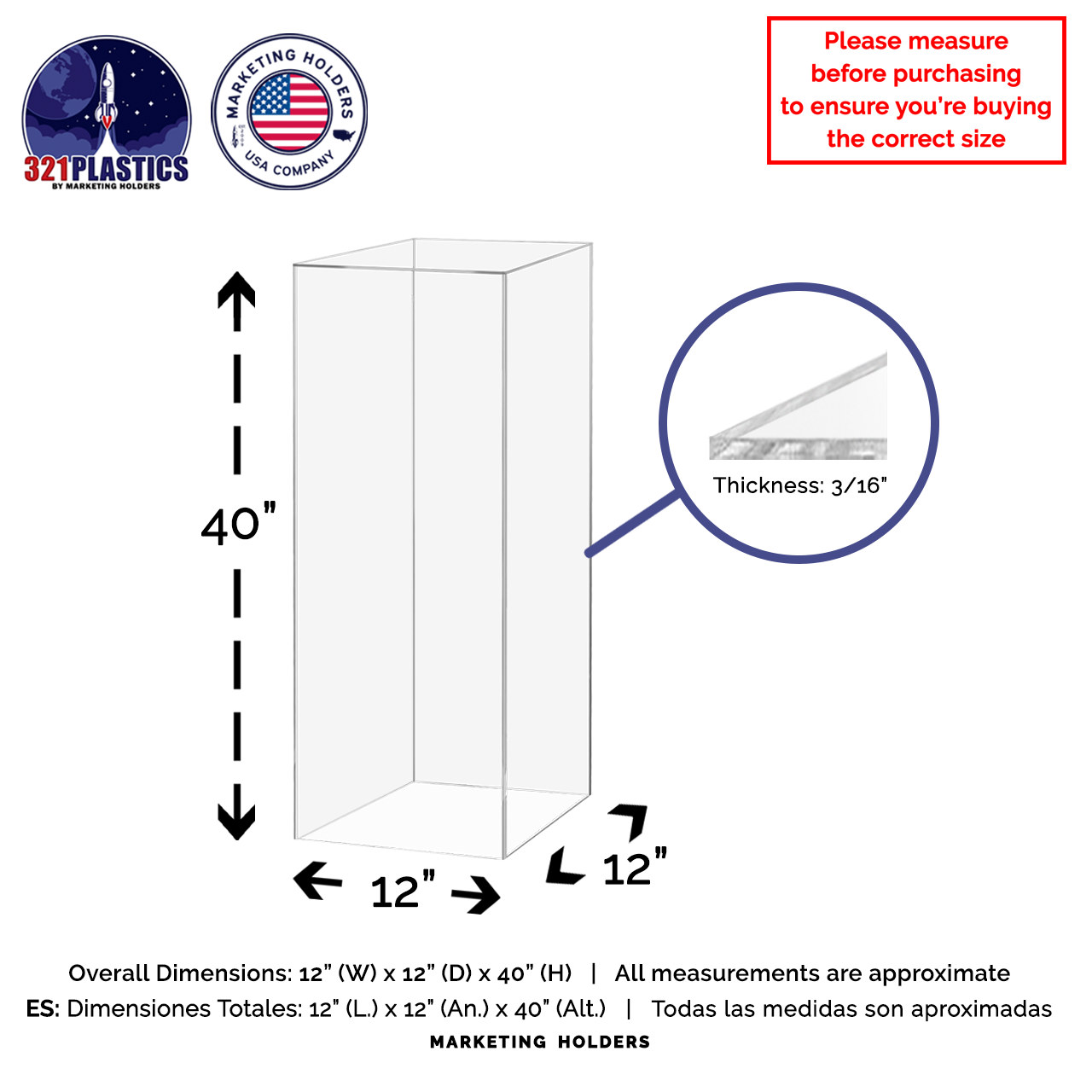 12" x 12" x 40" Rectangular Acrylic Retail Display Box