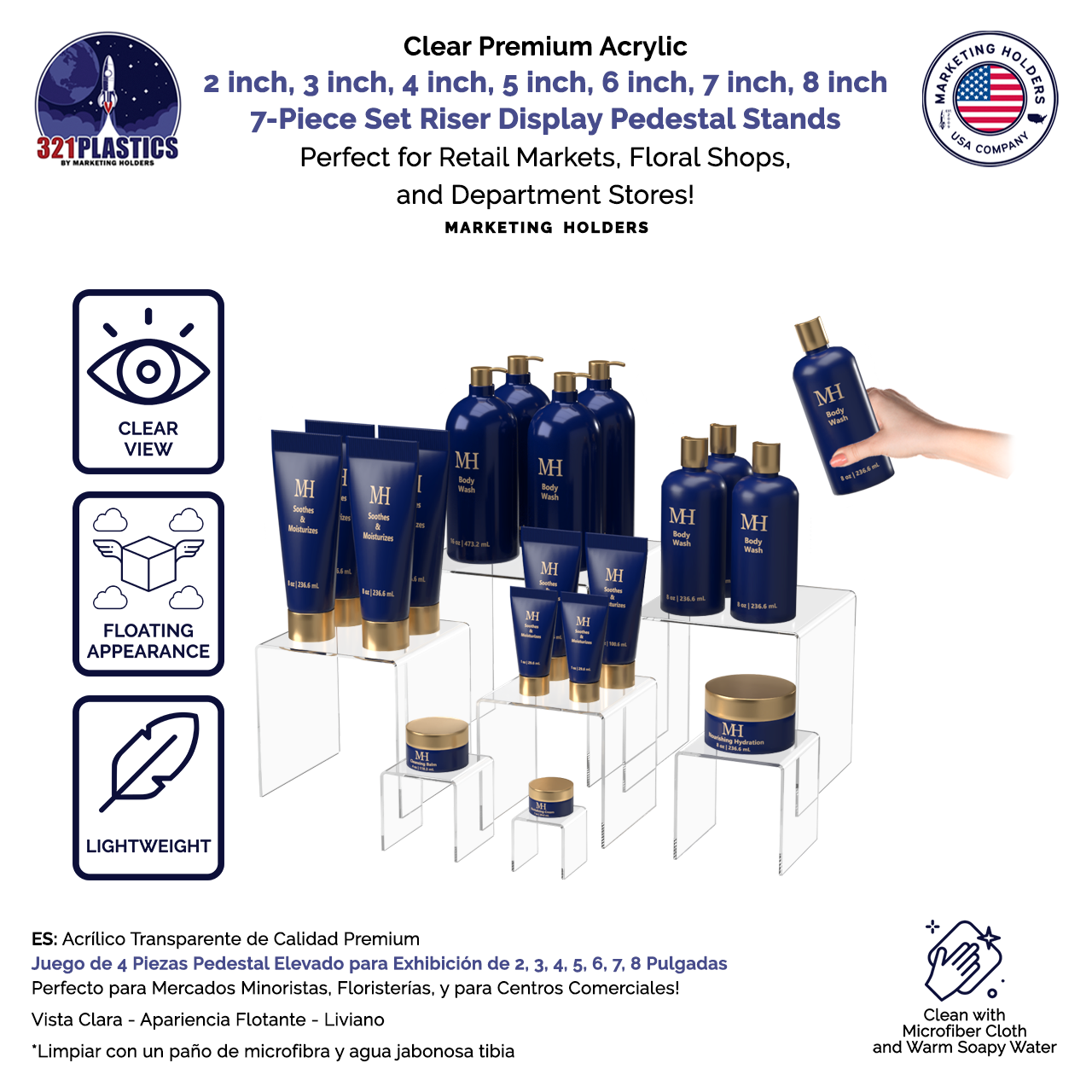 2" 3" 4" 5" 6" 7" 8" Riser Display Showcase Stands with 7 Pieces