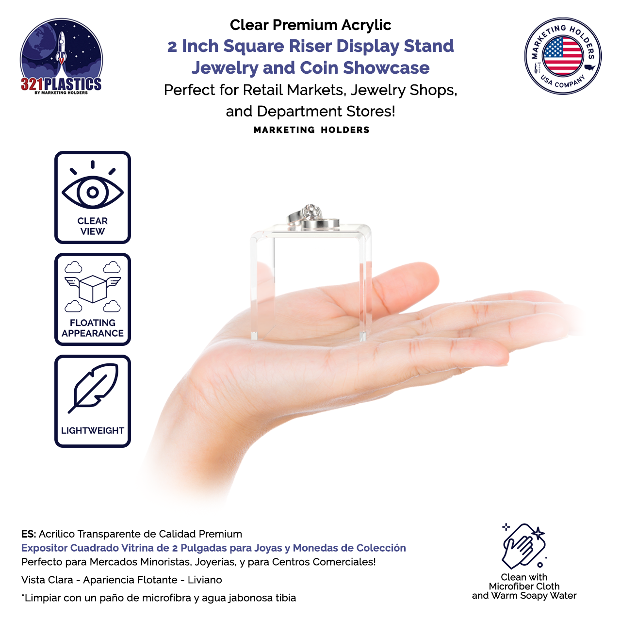 2" Square Riser Display Stand Acrylic Jewelry and Coin Showcase