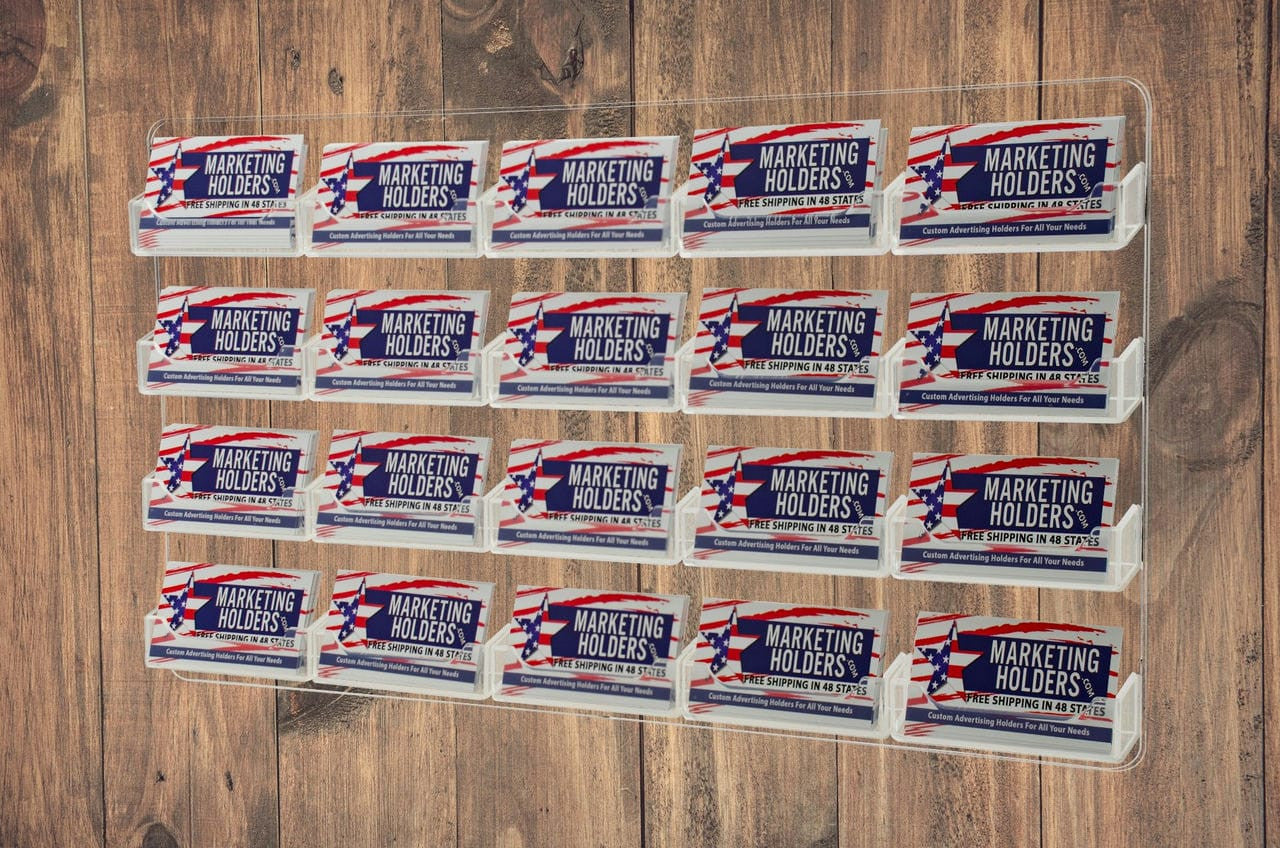 . The wall card rack provides long-term durability in addition to keeping your 3.5 inch by 2 inch printed material neatly in the holder, and can be easily placed on any wall by exits or entrances. We have designed these to display several sets of business cards and can be conveniently placed on walls or anywhere you want to leave your calling cards for the taking. These card holders come pre-drilled for easy hanging and includes hardware.