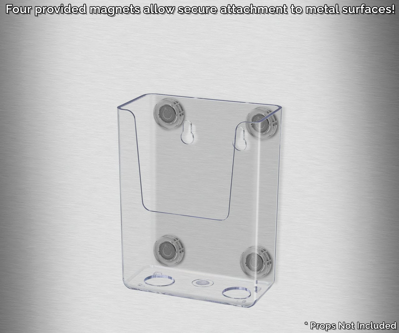 Made of durable clear plastic such as acrylic, plexiglass, lucite and PETG polycarbonate materials. The brochure holder features a clear see-through pocket that offers a full view of your printed advertisements or media. It also allows easy access for pamphlet removal and comes with strong magnets for simple installation on smooth, metal surfaces. This holder is a great addition in high-traffic areas where you want to display and provide your promotional literature for the taking.
