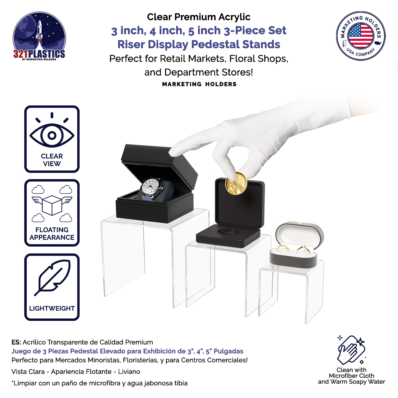 3 Piece Acrylic Risers 3" 4" 5" Display Pedestal Stands