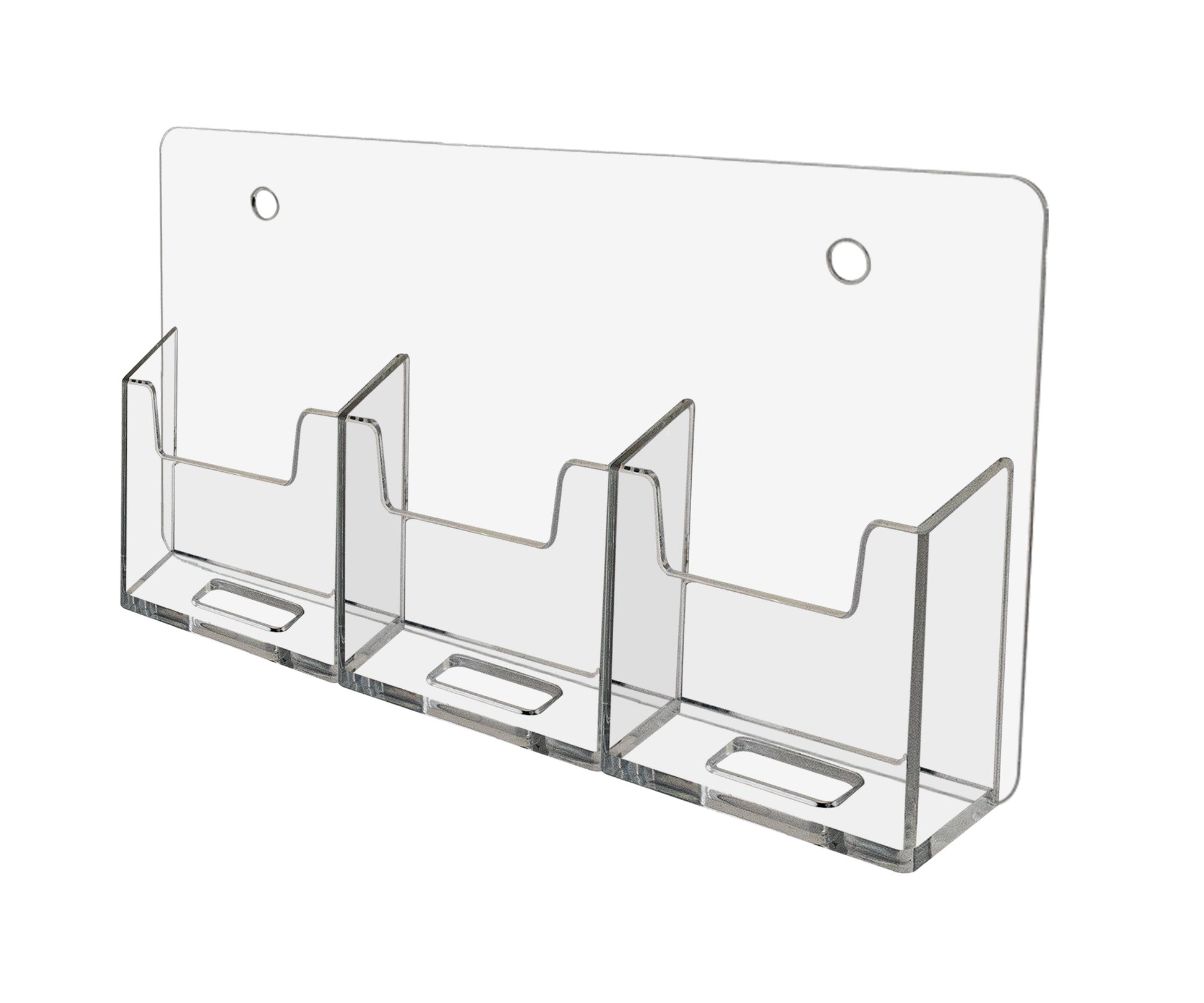 This three vertical pocket space saving wall mount business card holder provides a sturdy display for business, gift or appointment cards that complements any decor. These multi slot card racks are great space savers and help you keep counters free and clear of clutter.