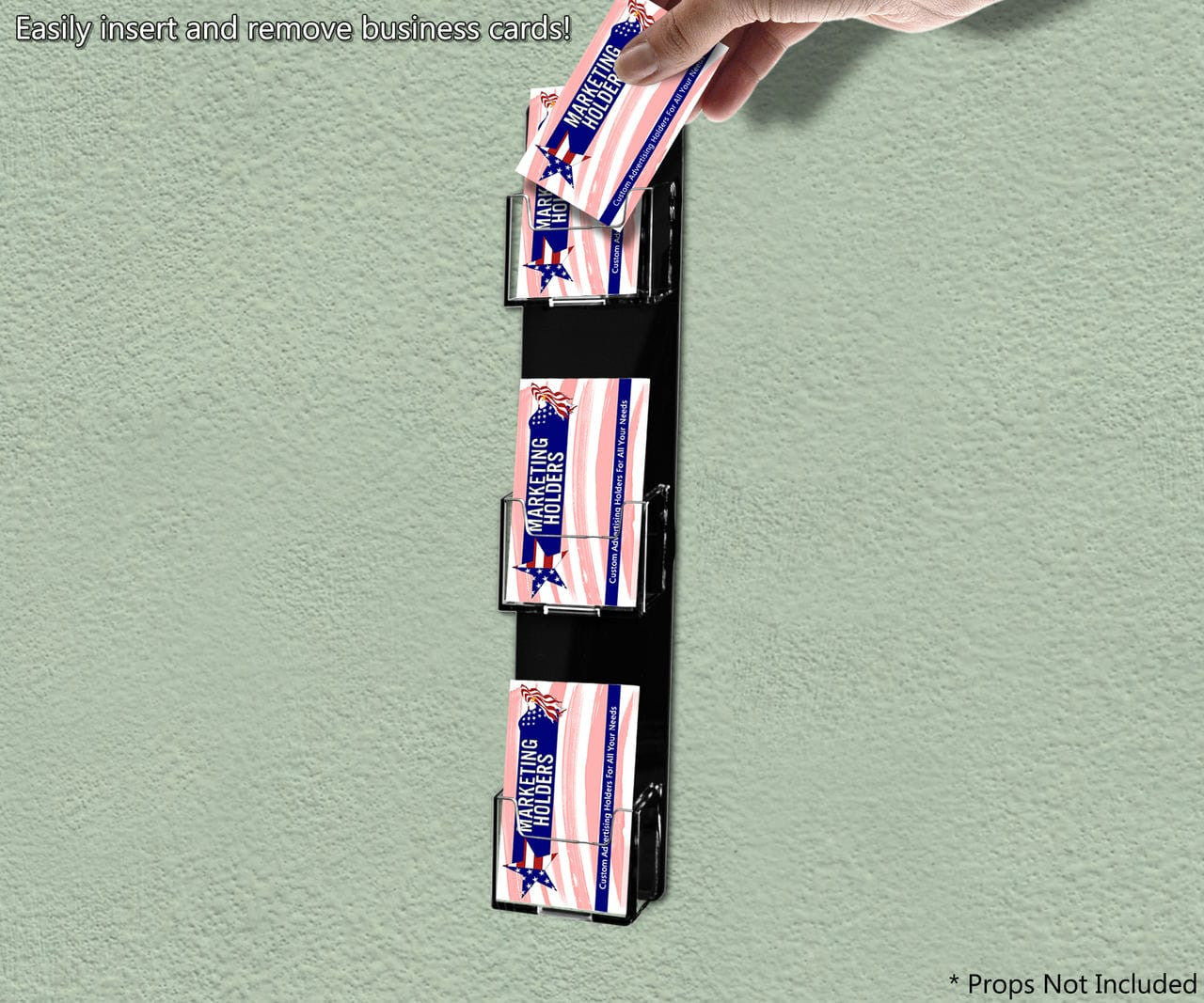 . The wall card rack provides long-term durability in addition to keeping your 2 inch by 3.5 inch printed material neatly in the holder, and can be easily placed on any wall by exits or entrances. We have designed these to display several sets of business cards and can be conveniently placed on walls or anywhere you want to leave your calling cards for the taking. These card holders come pre-drilled for easy hanging and includes hardware.