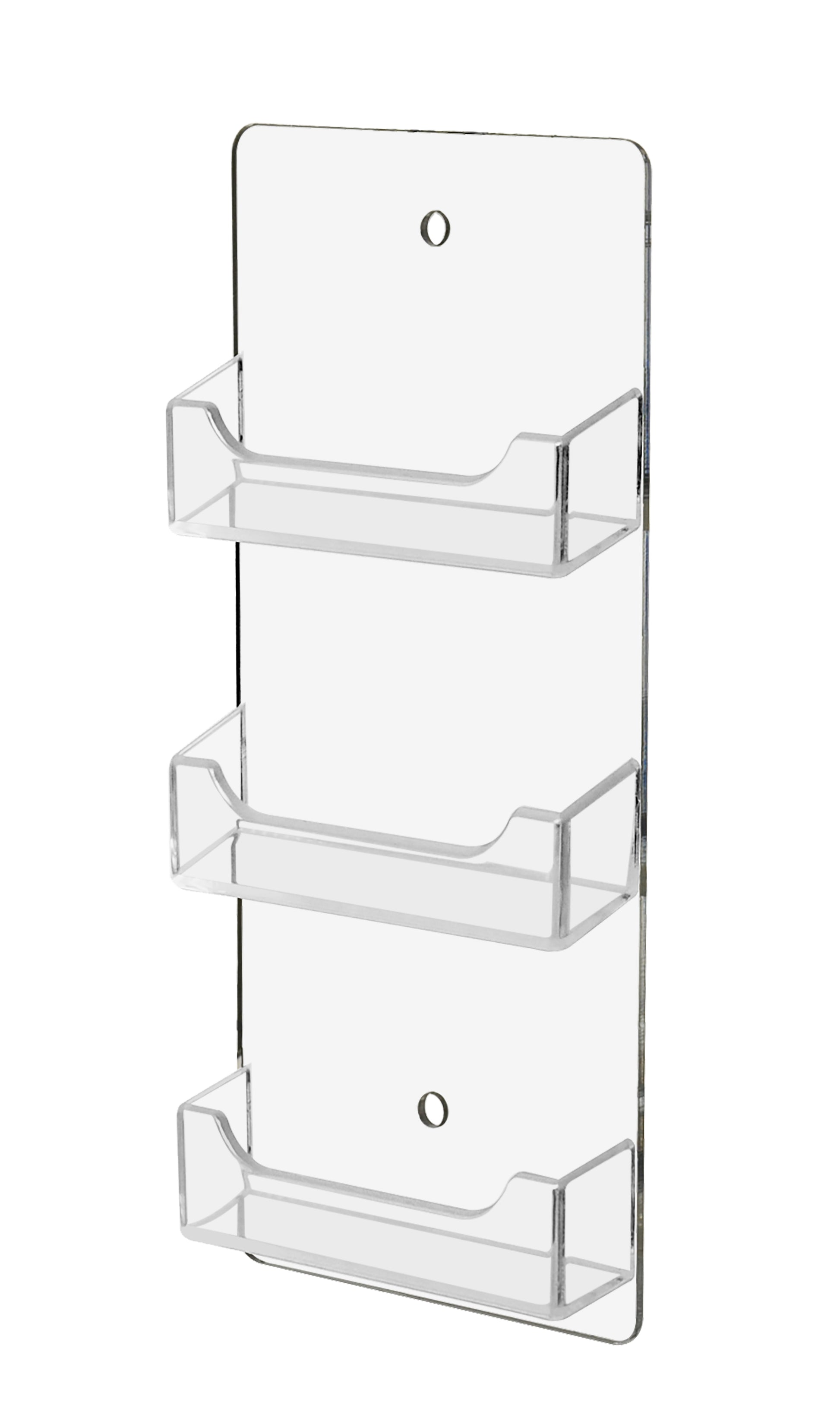 This triple pocket space saving wall mount business card holder provides a sturdy display for business, gift or appointment cards that complements any decor. These multi slot card racks are great space savers and help you keep counters free and clear of clutter.