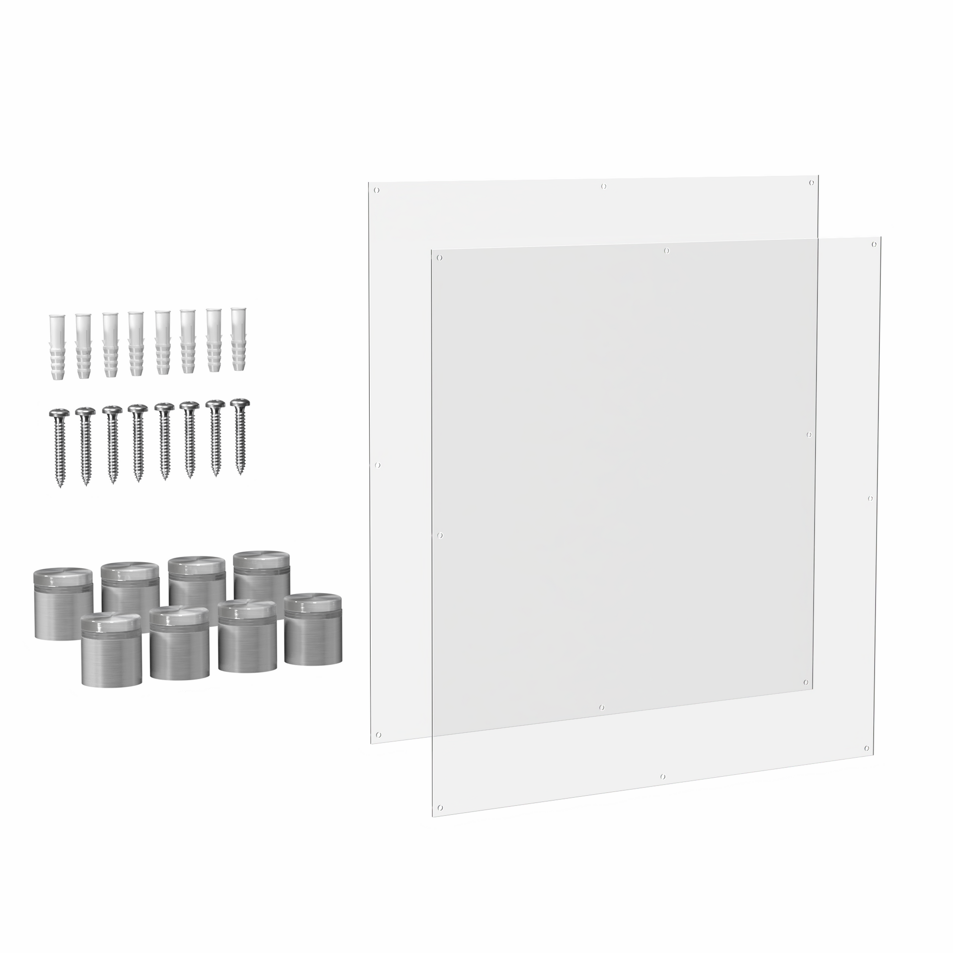 Give your poster size prints and photos the gallery treatment with our elegant stylish lucite frames. These square contemporary wall frames are fabricated with two panels of clear acrylic and silver standoffs to elevate the look of any room. Hang these beautiful acrylic frames in boutiques, museums, trade shows, hotel lobbies, restaurants, retail stores, schools, at work or at home. These modern artwork frames can be used horizontally or vertically when mounting them to walls and doors. Â
