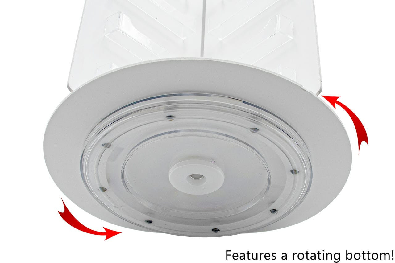 This spinning tower multi pocket freestanding business card holder is designed to hold multiple cards at once in one convenient place. These spinner stands will help keep the counters, tables and desk free of clutter and easily accessible to all customers or patients to easily take one. Each pocket will hold any 3.5”W x 2”H printed material. Made of durable clear acrylic plastic.