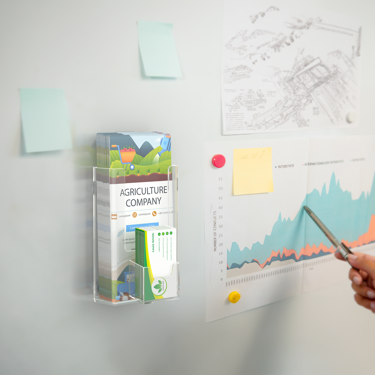 - Multi pocket holder with magnets for brochures, flyers, pamphlets, booklets and business cards