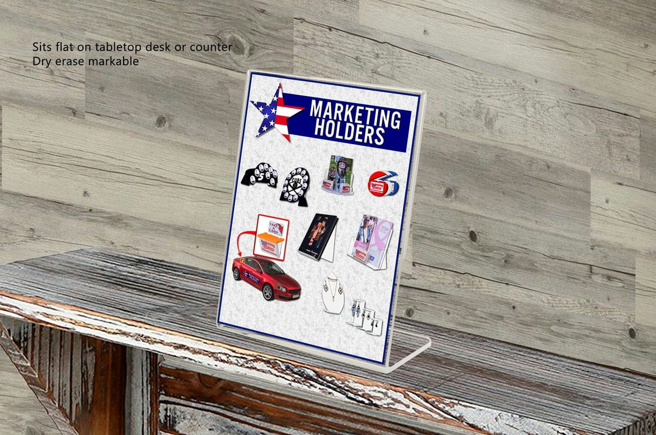 This 4" x 5" printed material sign holder is perfect for displaying small signage, advertisements, product information, pricing, photos, table menus and more. Use these holders to inform your customers or clients about hours of operation, today's specials, ads and advertisements or general informational notices. These are lightweight and portable which means they can be placed in the reception area of any business, hotel, restaurants, doctors offices or medical facilities.