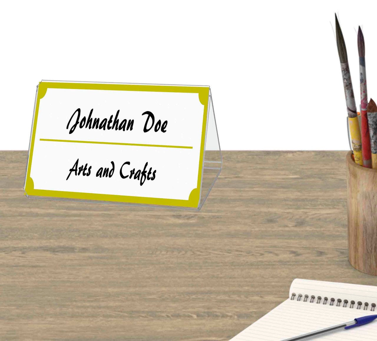 - Display on desks, tables, and counters in restaurants, bars, retail stores, trade show booths, hotels and other business locations
