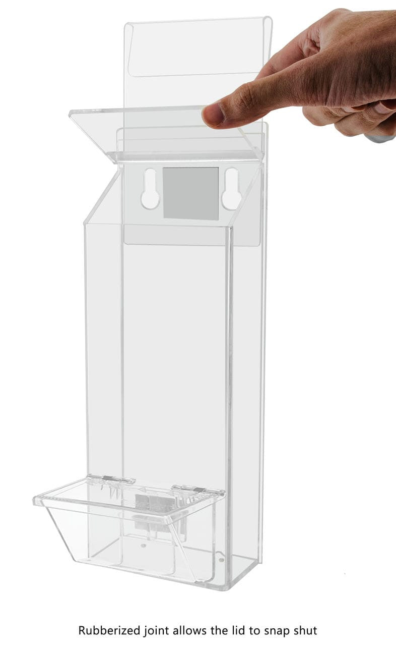 This take one holder is super durable and has a clear front to show your literature. They are designed to hold 4”W x 9"H literature. All of our outdoor brochure holders come with a lid to help keep water and dirt from drifting in. These are not waterproof but durable to withstand the elements. In addition to your advertisements, the acrylic caddy has a business card pocket that can also be used to display standard 3.5"W business cards and other small media like VIP cards or gift cards.