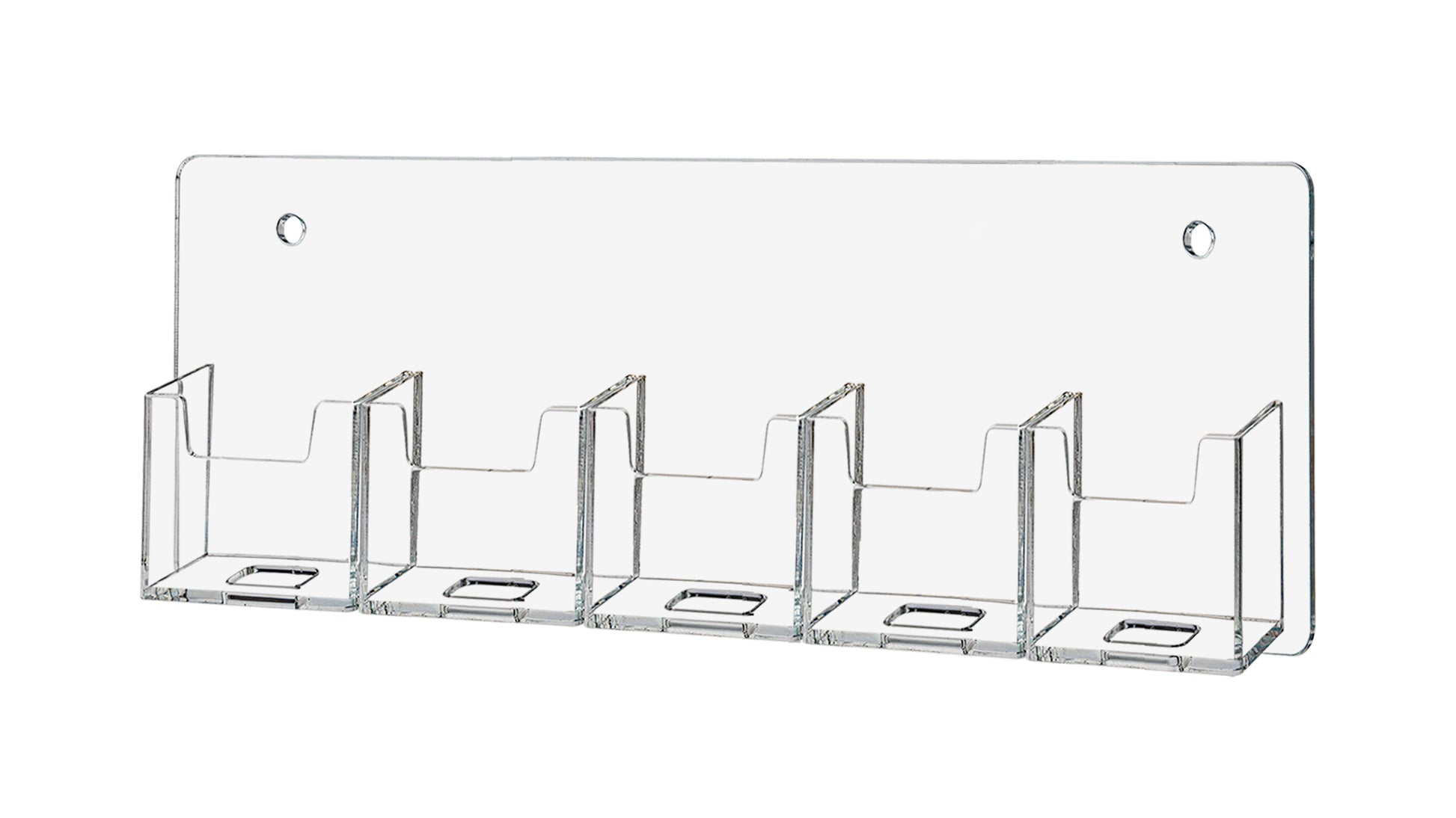 This five vertical pocket space saving wall mount business card holder provides a sturdy display for business, gift or appointment cards that complements any decor. These multi slot card racks are great space savers and help you keep counters free and clear of clutter.