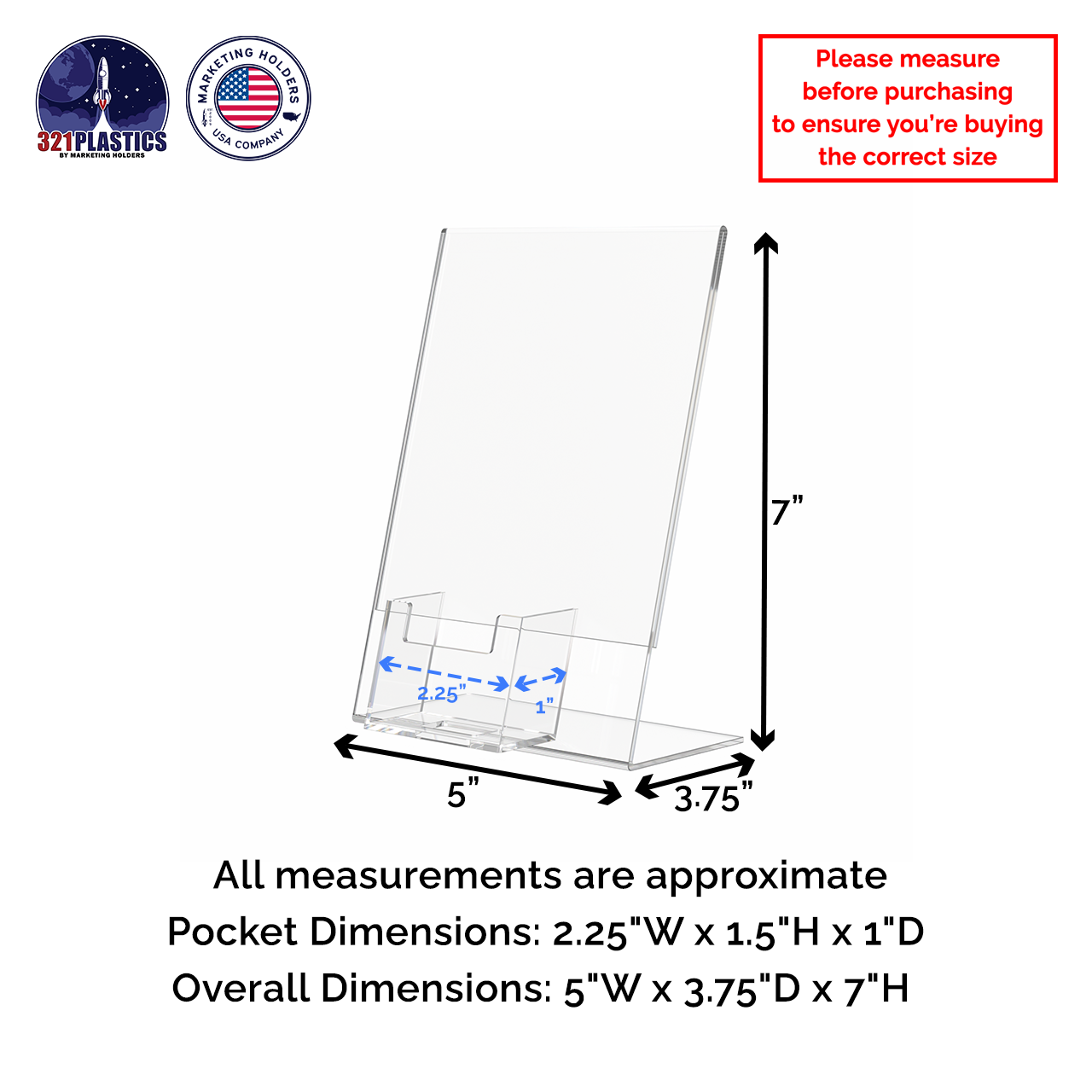 - Holds 5"W x 7"H literature and 2"W x 3.5"H vertically designed business cards.