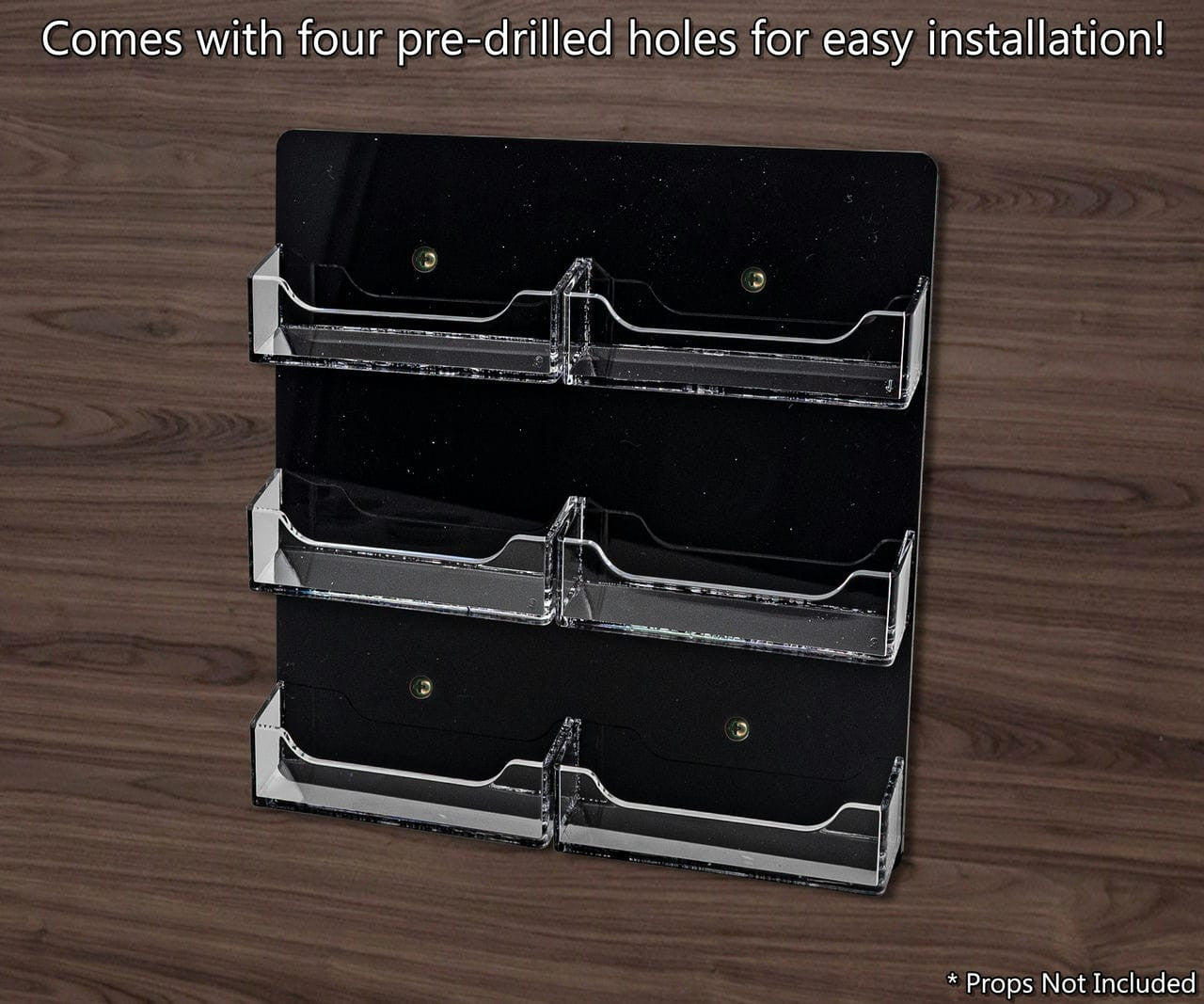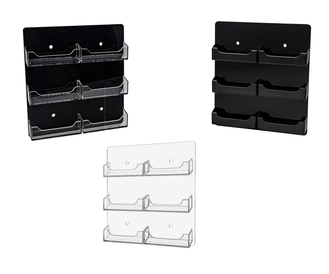 This six pocket space saving wall mount business card holder provides a sturdy display for business, gift or appointment cards that complements any decor. These multi slot card racks are great space savers and help you keep counters free and clear of clutter.