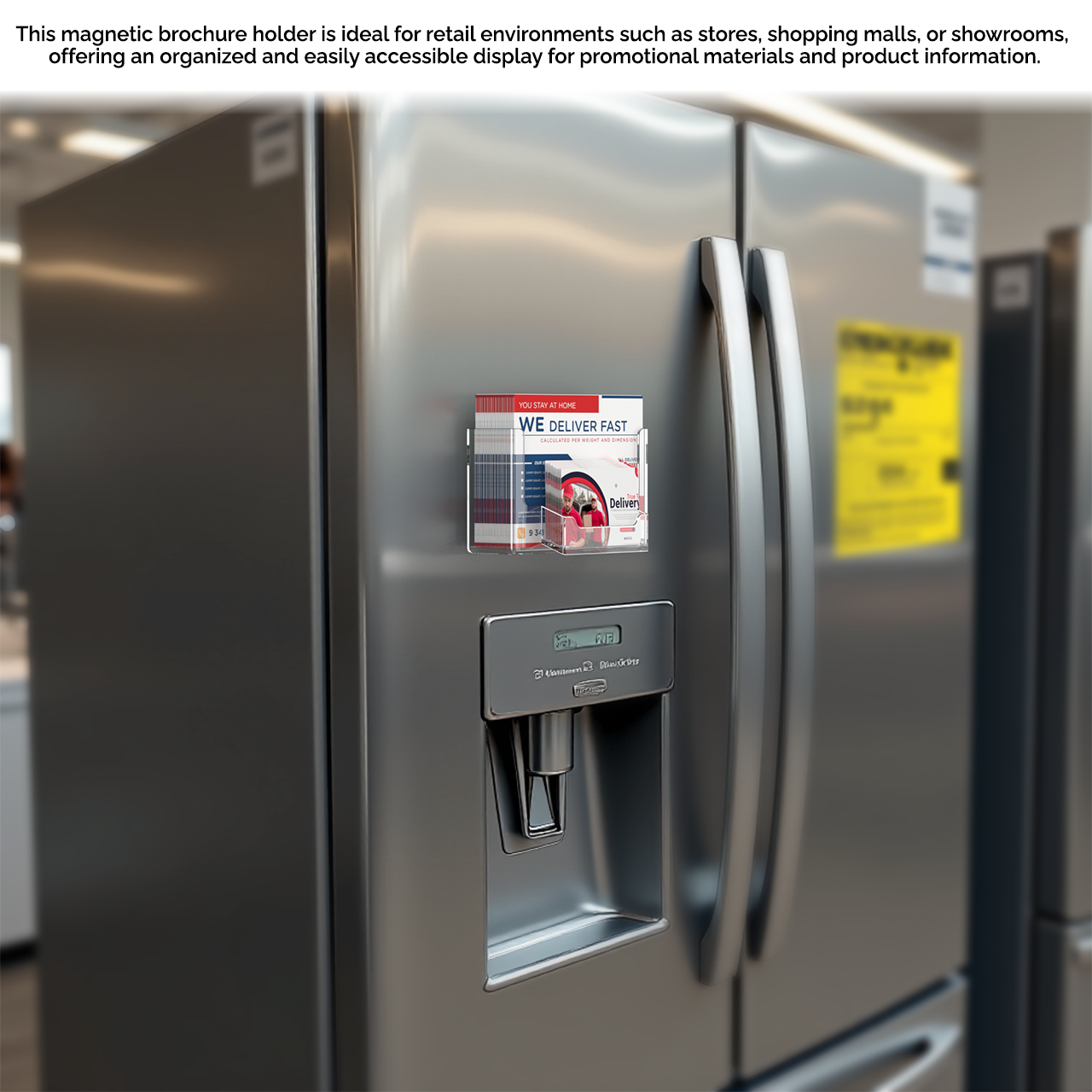 Made of durable clear plastic such as acrylic, plexiglass, lucite and PETG polycarbonate materials. The brochure holder features a clear see-through pocket that offers a full view of your printed advertisements or media. It also allows easy access for pamphlet removal and comes with strong magnets for simple installation on smooth, metal surfaces. This holder is a great addition in high-traffic areas where you want to display and provide your promotional literature for the taking.