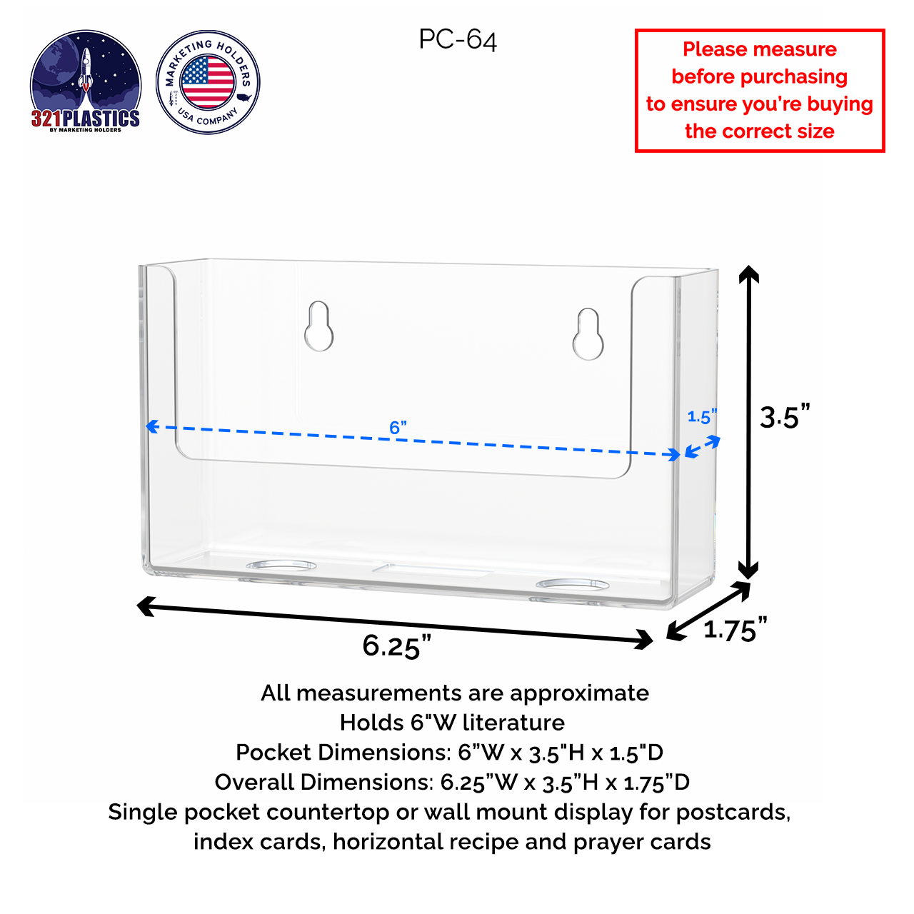- Single pocket countertop or wall mount display for postcards, index cards, horizontal recipe and prayer cards