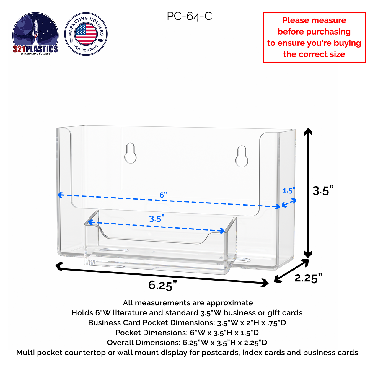 - Holds 6"W literature and standard 3.5"W business or gift cards