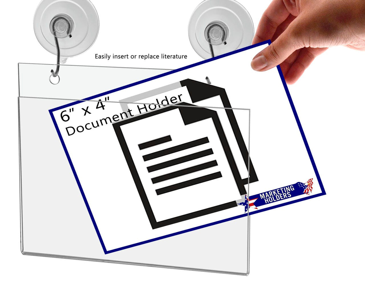 Marketing Holders clear acrylic sign holder is perfect for displaying signage or posting temporary notices for employees or customers in entryways, glass doors and windowed front desk enclosures. Use them to display signage for special events, sales, store or office hours. Ideal for use at retail stores, restaurants, financial institutions, business offices and more!