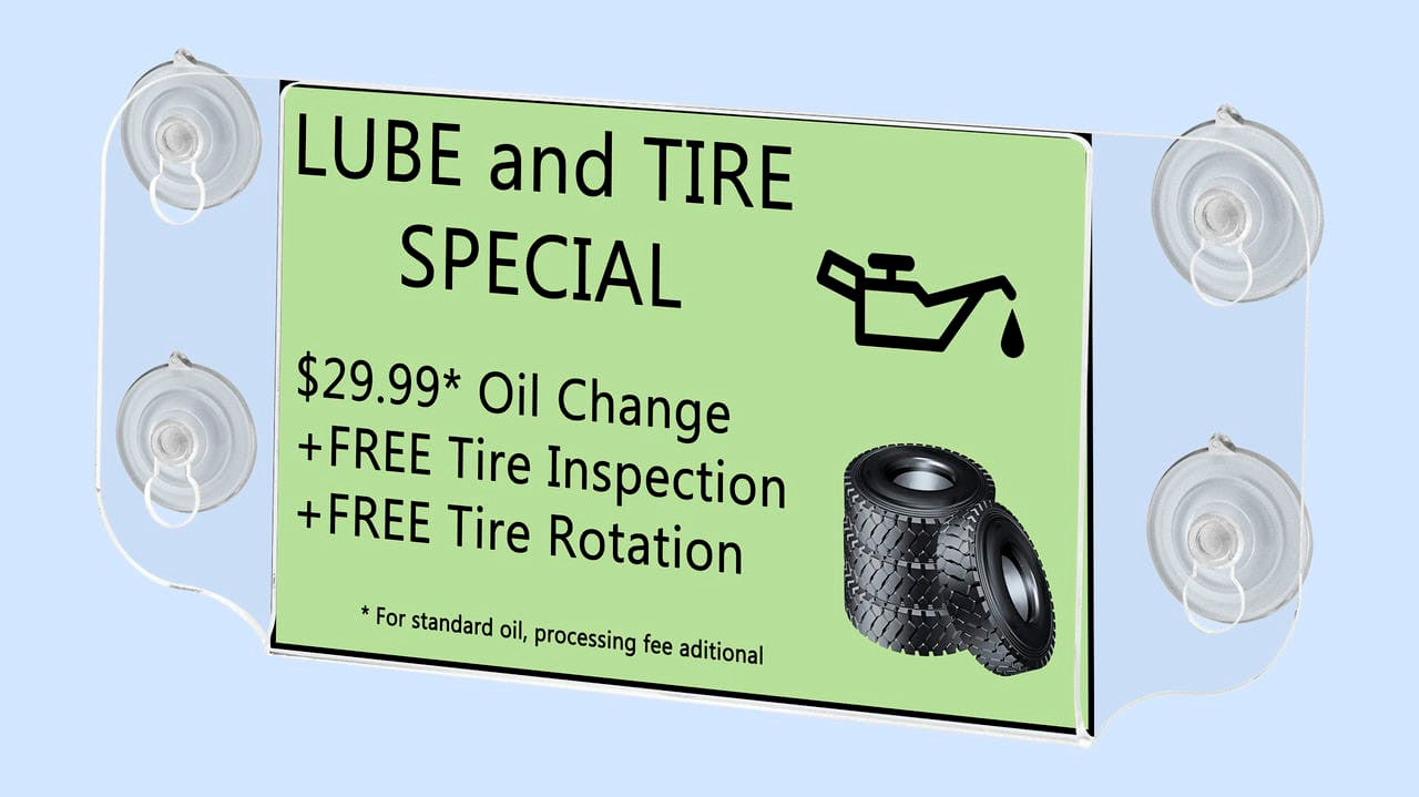 The suction cup sign holders are a more professional option to taped notices that lose their stick over time and leave a messy residue on glass walls, doors and windows when the event is over. Made of top quality acrylic, this clear sign holder has a high durability and great resistance. It has smooth edges and is transparent, protecting retail signage from dirt so that the text or image wouldn't be damaged but clear and readable.Â
