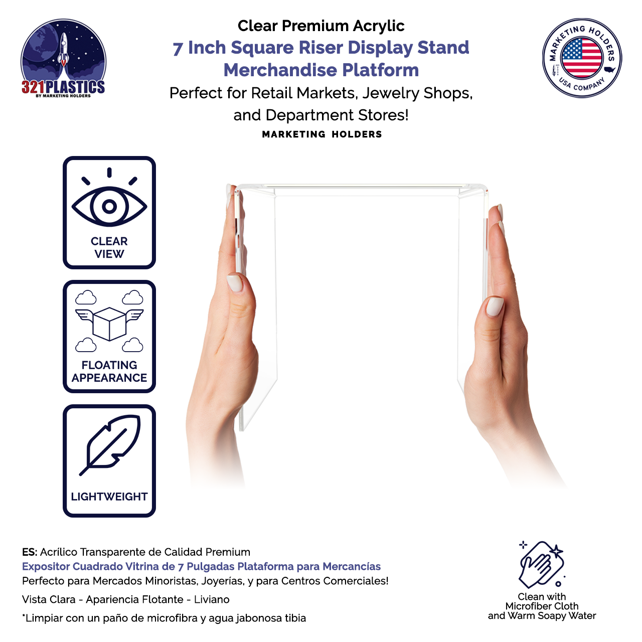 7" Square Riser Display Stand Product Showcase Acrylic Pedestal