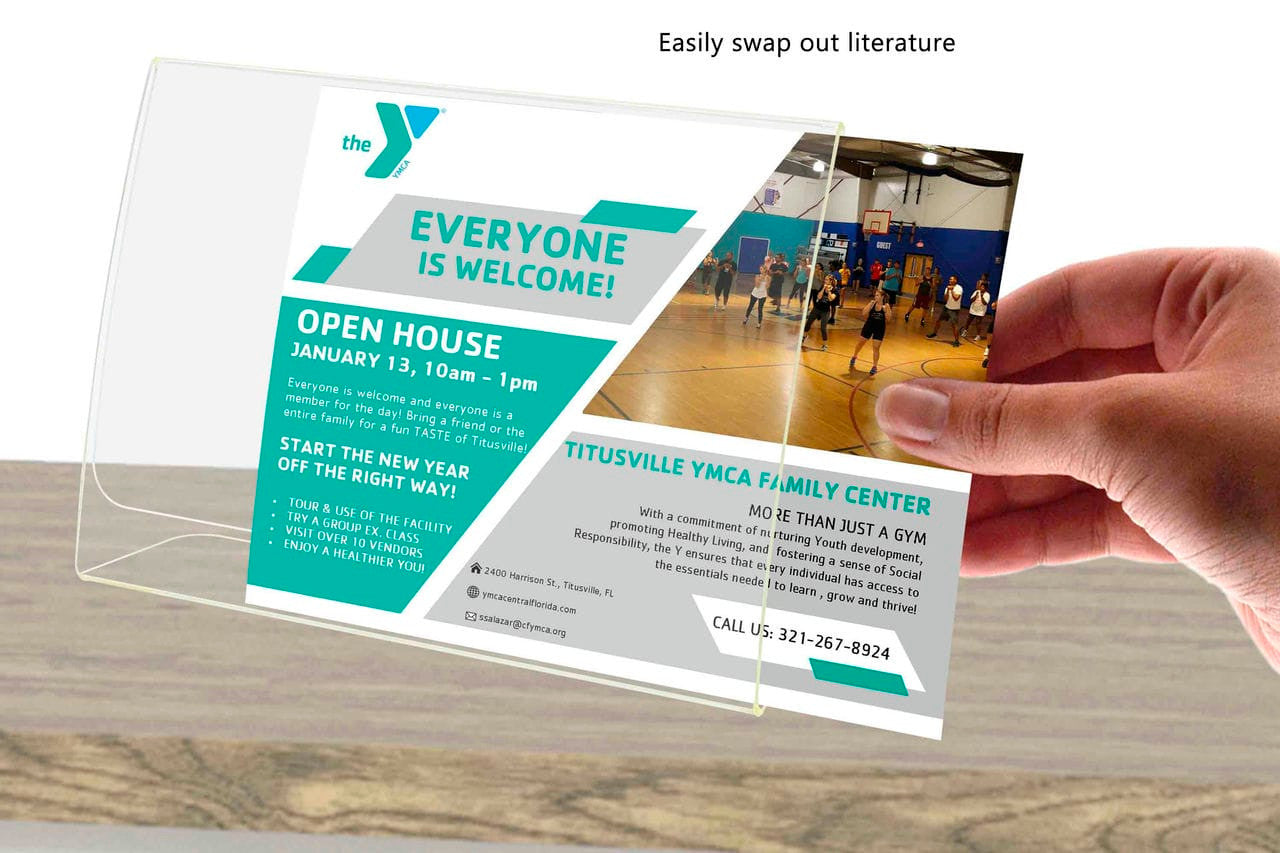- Holds 7”W x 5”H literature.