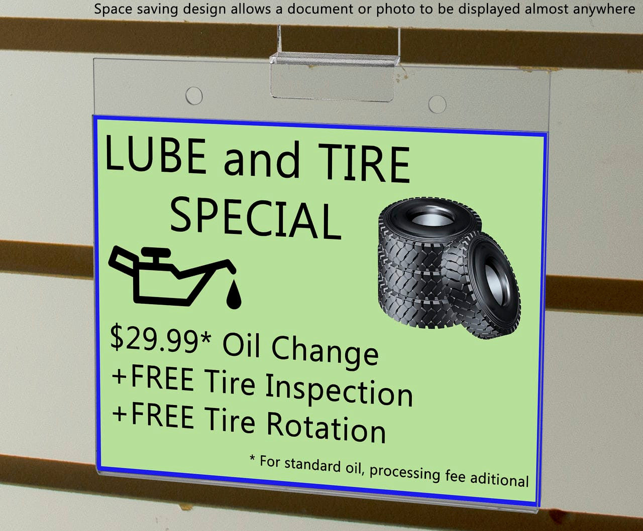 These slatwall sign accessories can be used practically anywhere, from trade shows to bookstores and galleries. They are easy to use, simply slide your paper sign or any other printed literature anywhere you want the general public and or office staff to see them. Our products can be and have been purchased for businesses like offices, retail stores, shopping centers, malls, gas stations, automotive and tire shops, candy shops, toy and video game stores, salons, storage facilities, clinics, schools, government buildings and welcome centers.