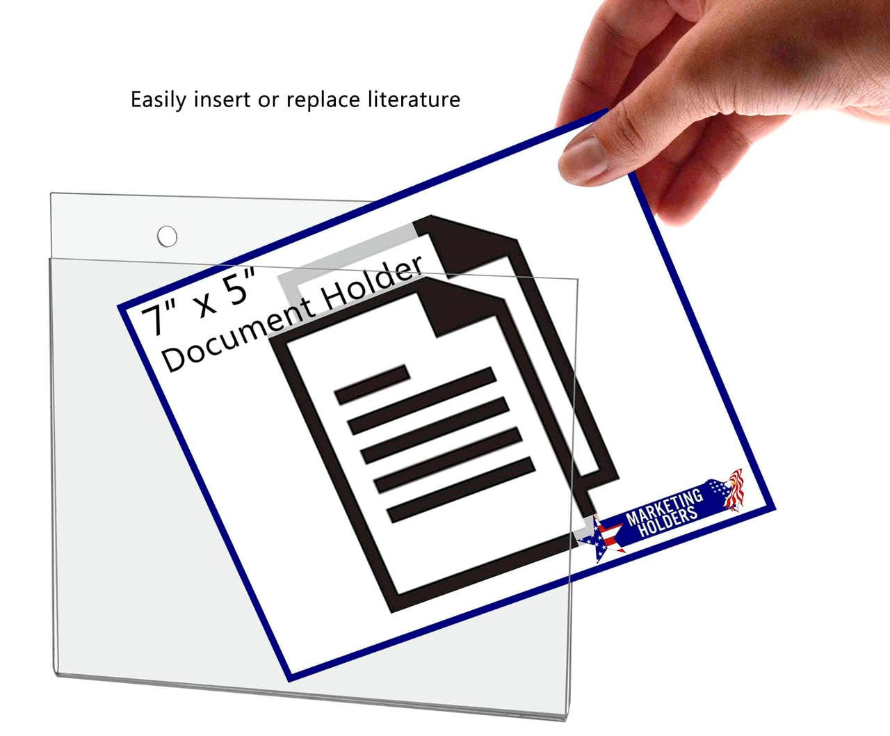 - Holds 7"W x 5"H literature