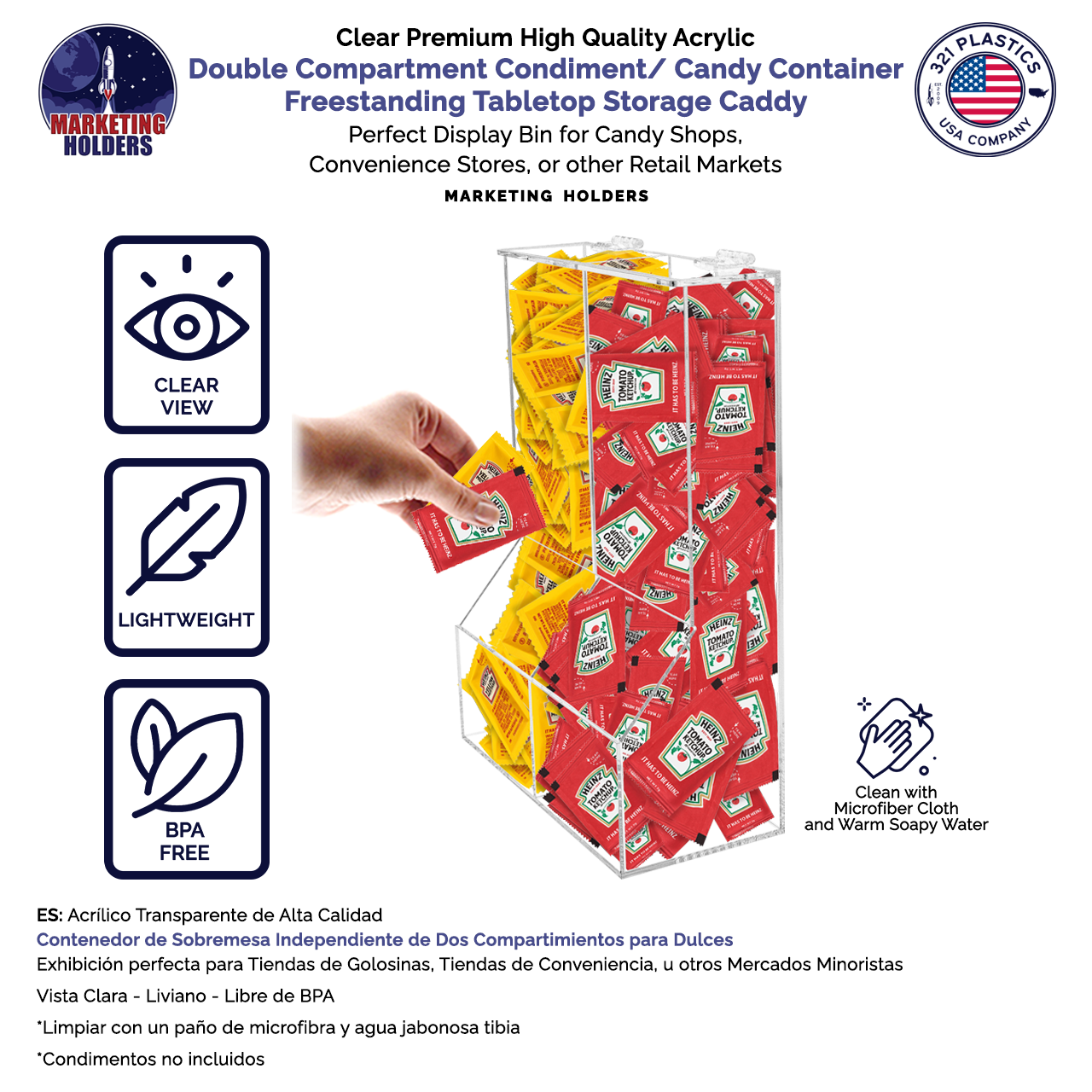 Double Compartment 8.5”W Candy Container Clear Acrylic Freestanding Tabletop Bin