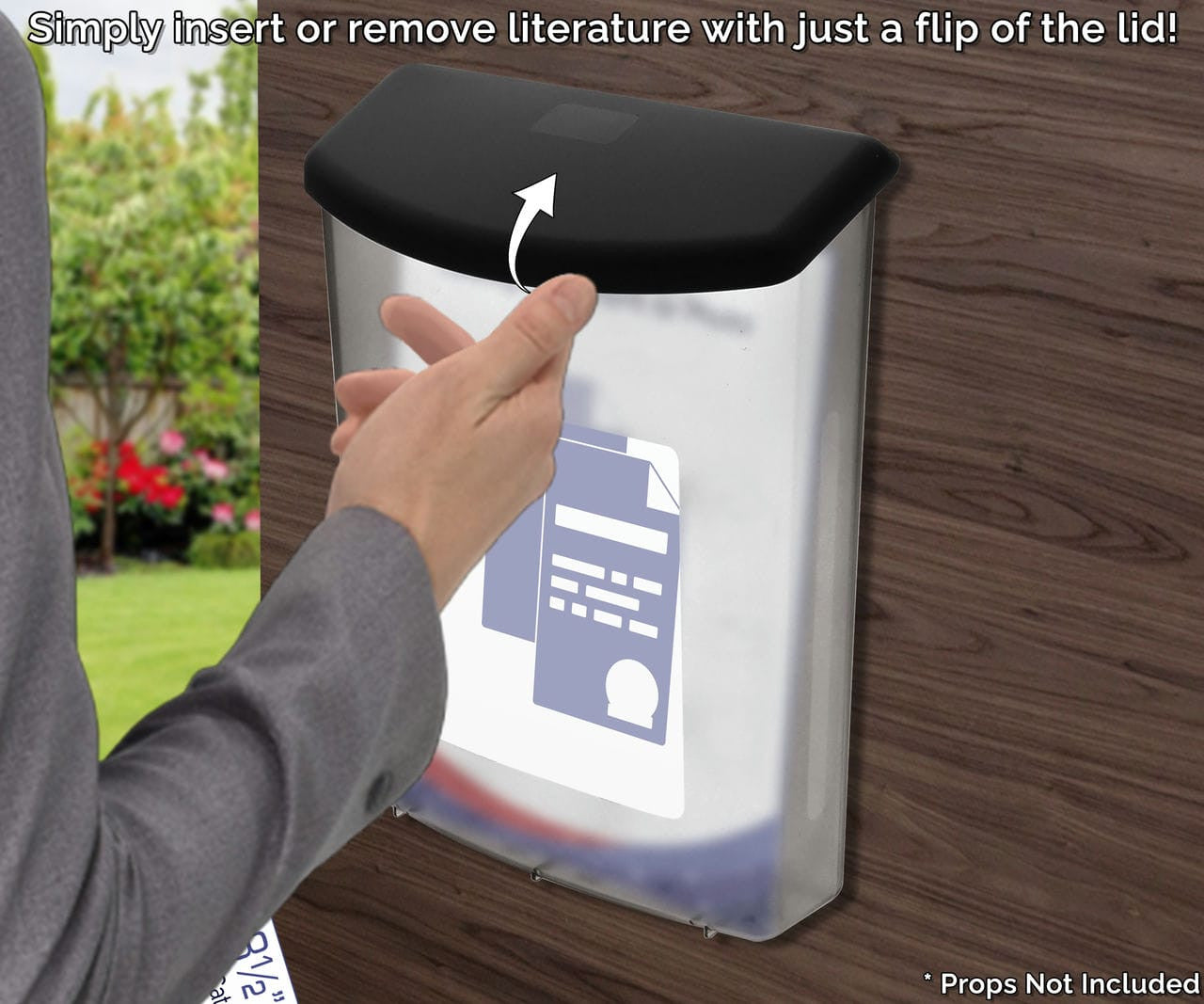 Mount it on walls, sign posts, or other solid surfaces and start advertising today. Designed with versatility in mind, the printed material bin comes pre-drilled with mounting hardware for simple wall installation. These frosted literature boxes come with a black lid to help keep water and dirt from drifting in. These are not waterproof but durable to withstand the elements.