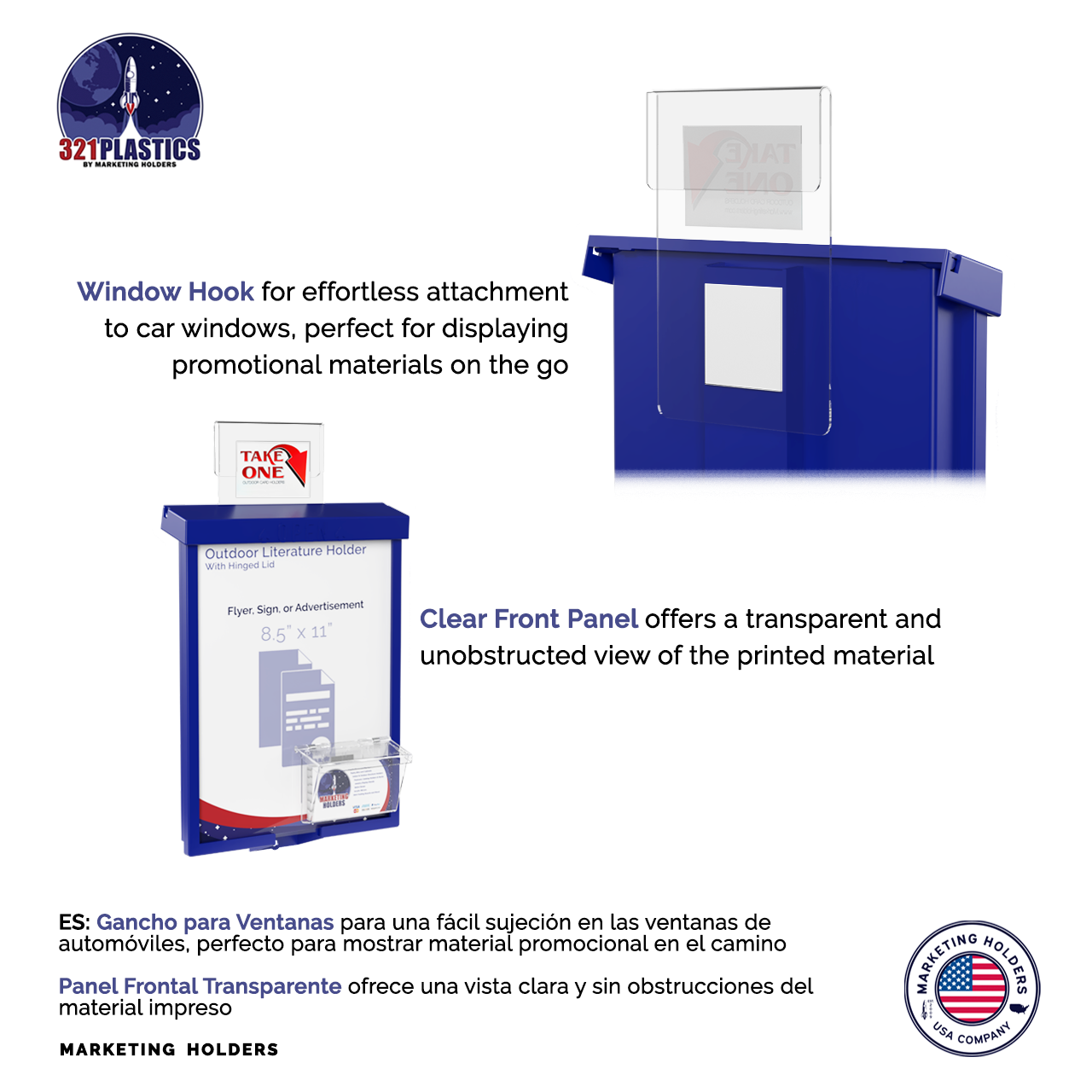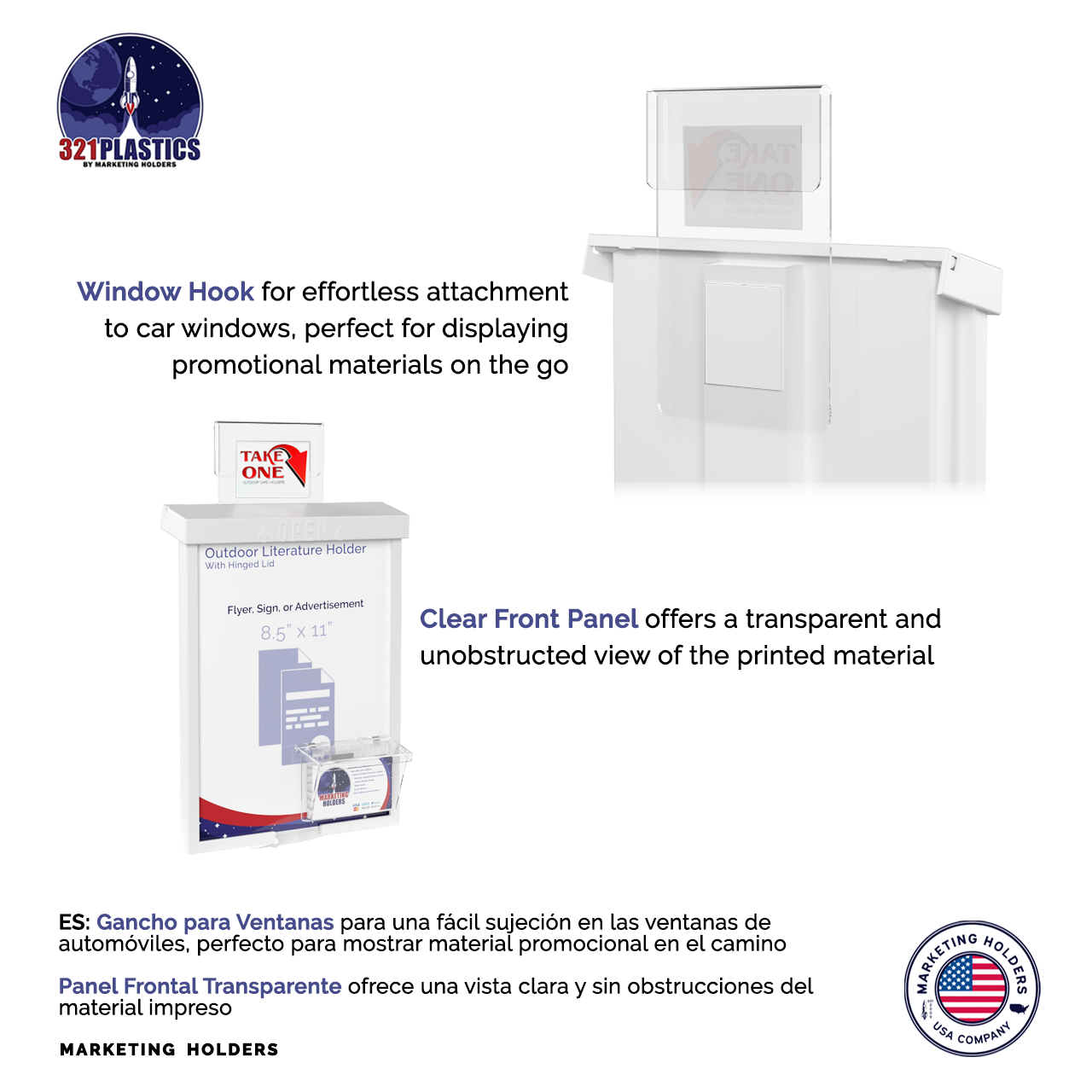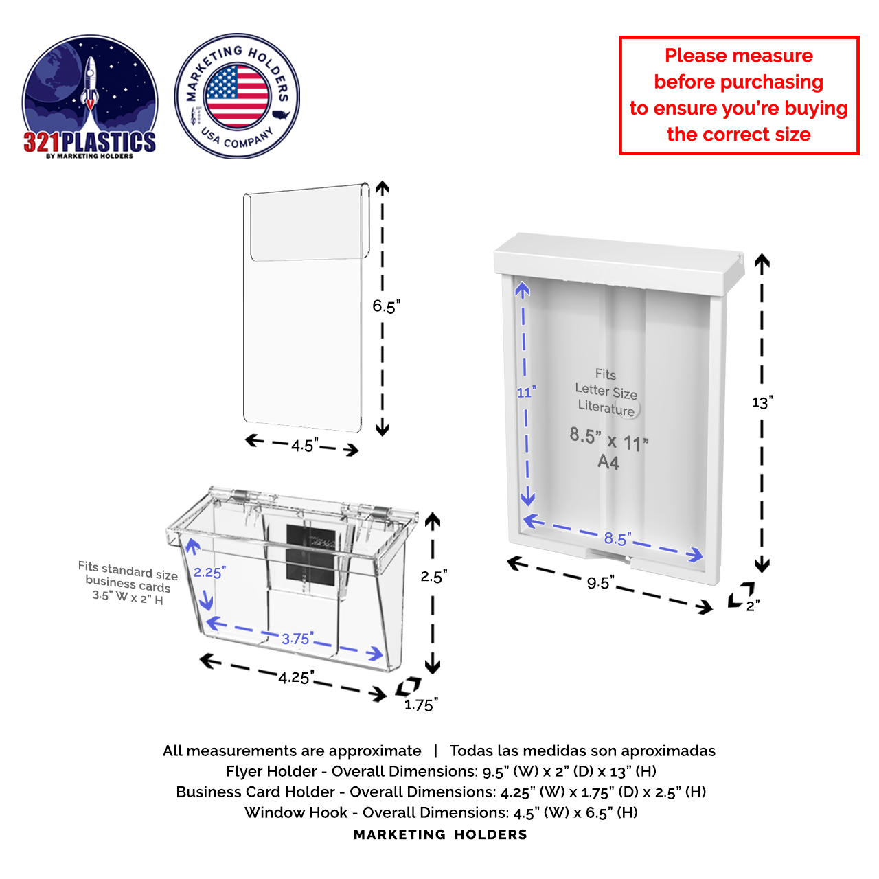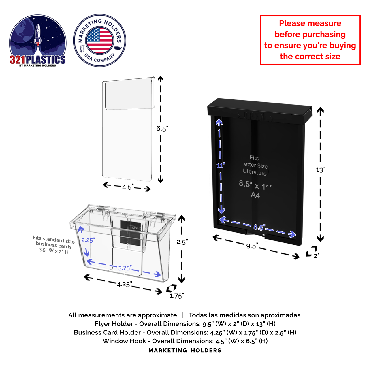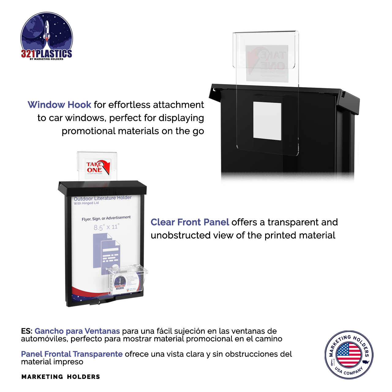 - Vehicle Window Hook Flyer Holder for 8.5”W x 11”H Literature and Standard Business Cards