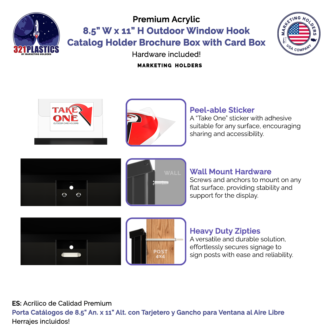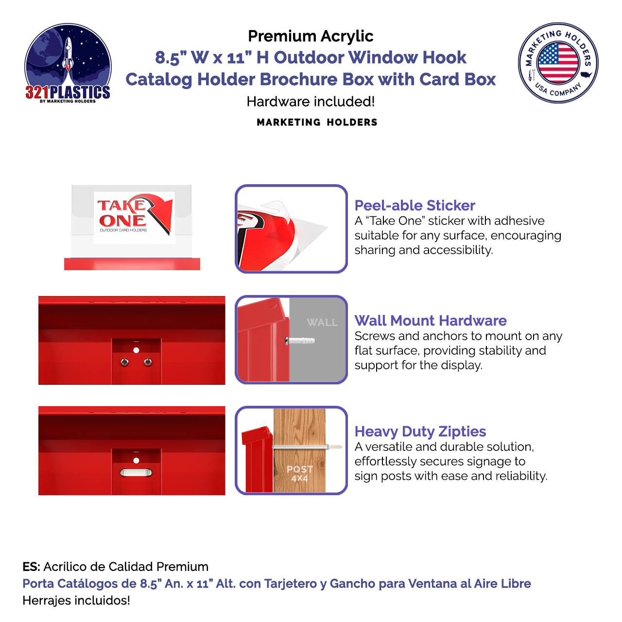 8.5"W x 11"H Outdoor Window Hook Catalog Holder with Card Box