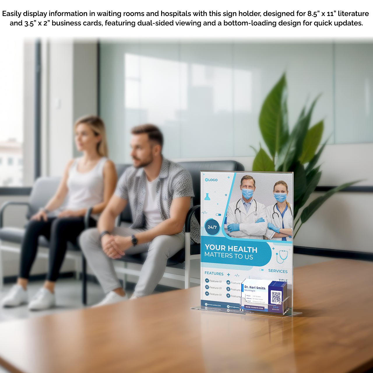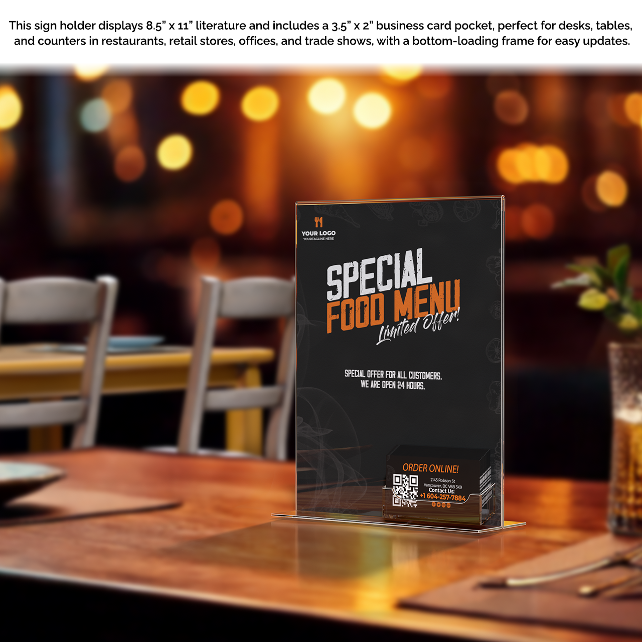 - Tabletop Sign Holder Frame with Business Card Pocket