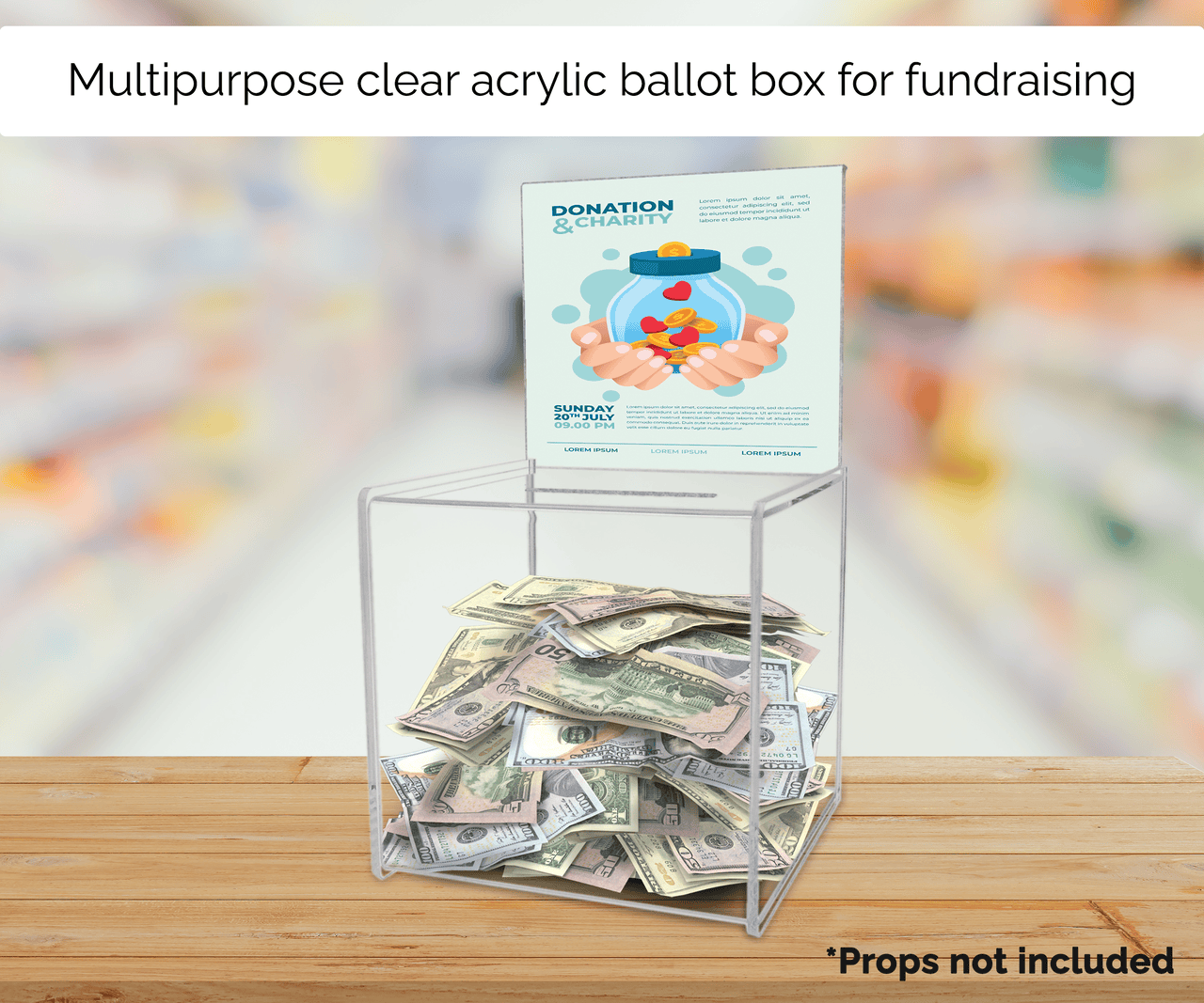 These contest boxes are small and fit on counters and tabletops without taking up too much space. Acrylic ballot boxes can be quite beneficial to increasing traffic to your business, charity or organization. Â