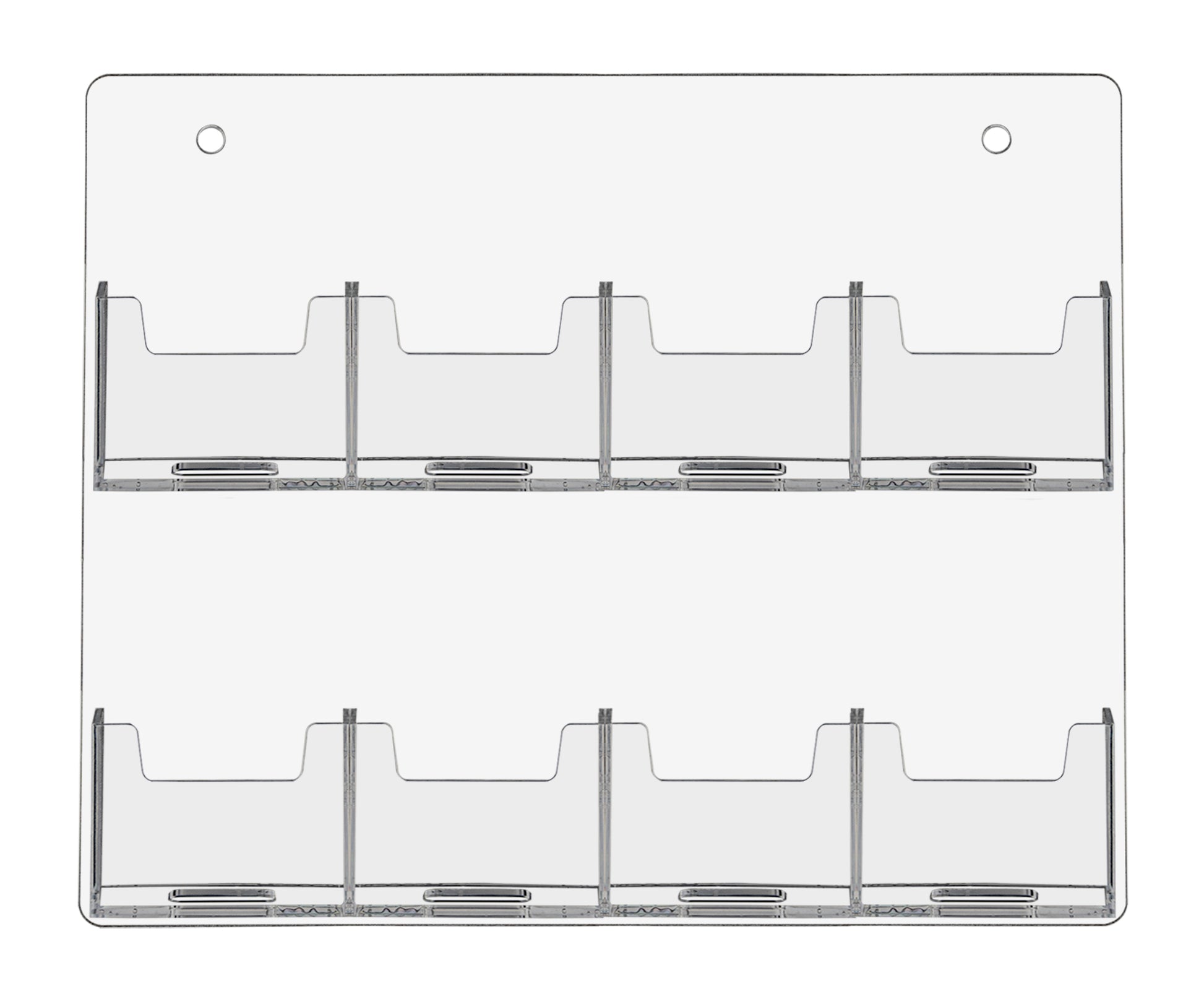 This eight vertical pocket space saving wall mount business card holder provides a sturdy display for business, gift or appointment cards that complements any decor. These multi slot large capacity card racks are great space savers and help you keep counters free and clear of clutter.