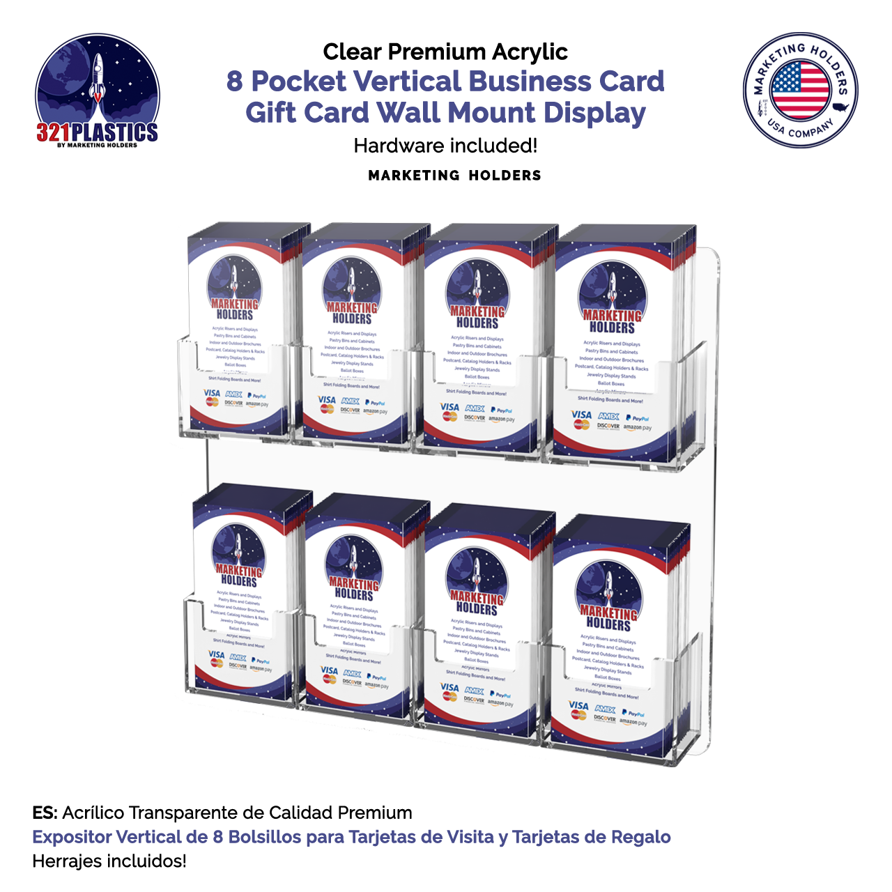 8 Slot Gift Card Retail Holder Card Display Contact Wall Mount Vertical Pockets