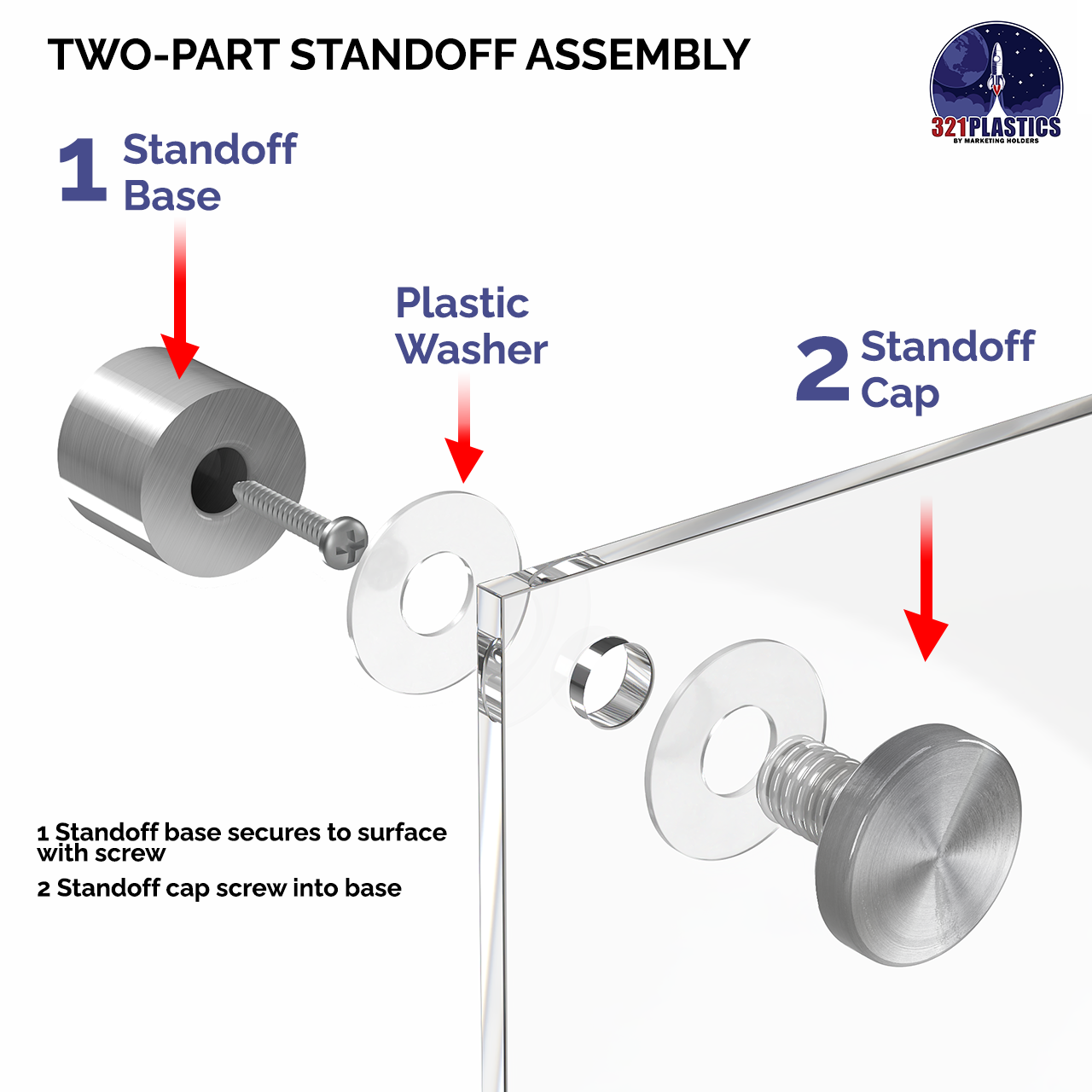 - Each sign holder will come with two .5" stainless steel standoffs and wall mounting hardware
