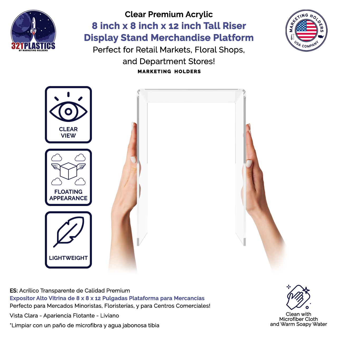 8" x 8" x 12" Riser Display Platform Acrylic Retail Product Stand