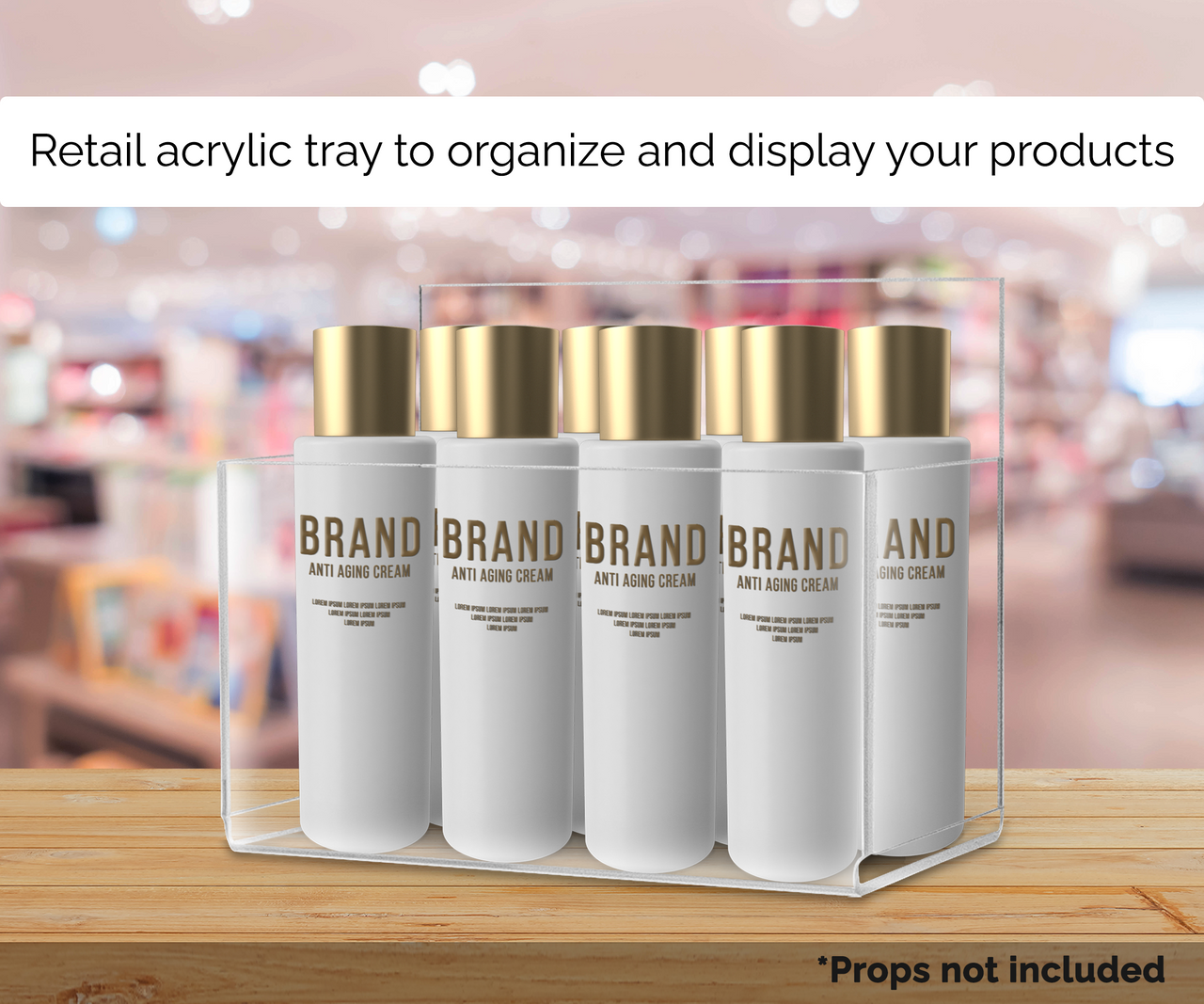 Our trays are durable and versatile enough to fit all of your organizational and storage needs. From residential to professional businesses, these clear lucite trays and bins allow you to store loose products and other small items such as pens, hair ties, cosmetics or arts and crafts supplies. These compartment caddies can help you to keep your closets, bathroom vanities and even showers organized.