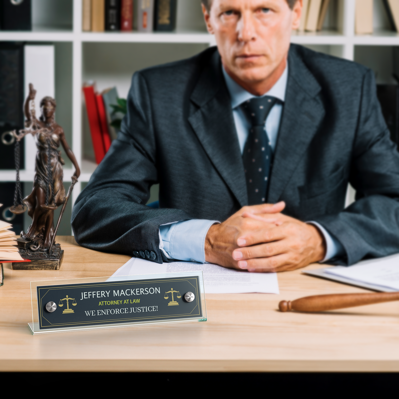 8"W x 2"H Elegant Tabletop Euro Style Nameplate Sign Frame with Silver Standoffs