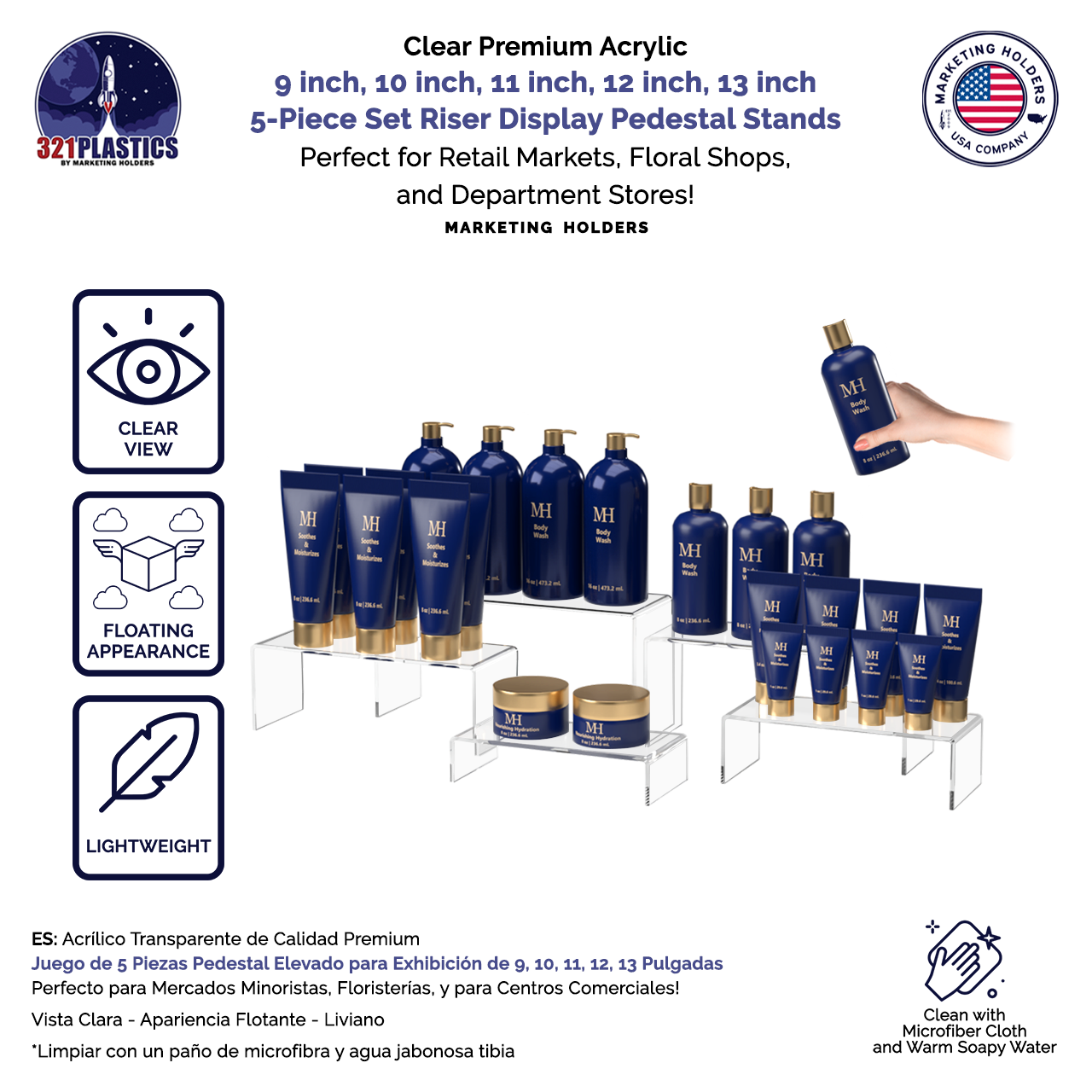 9" 10" 11" 12" 13" Riser Display Stands Acrylic 5 Pieces