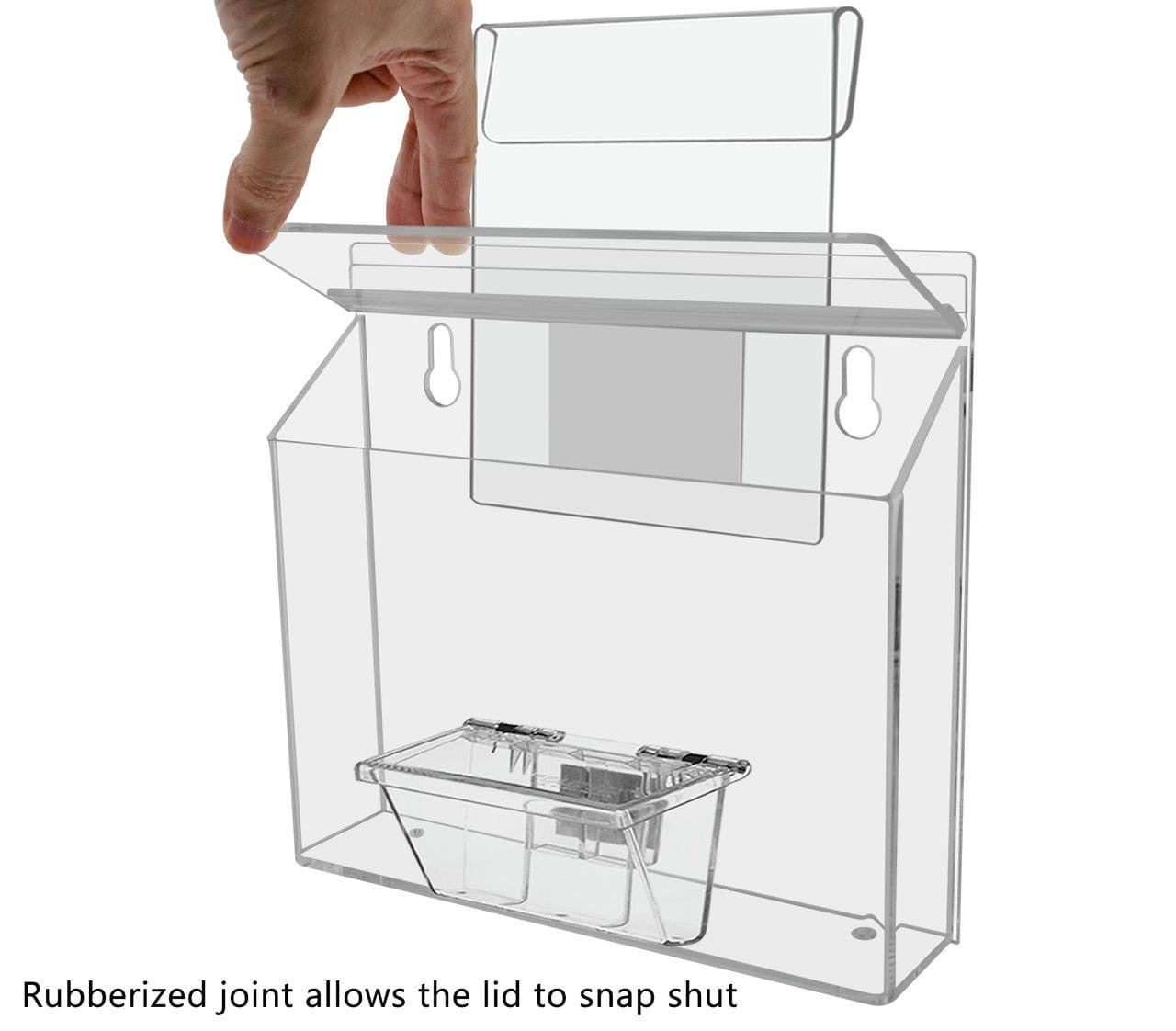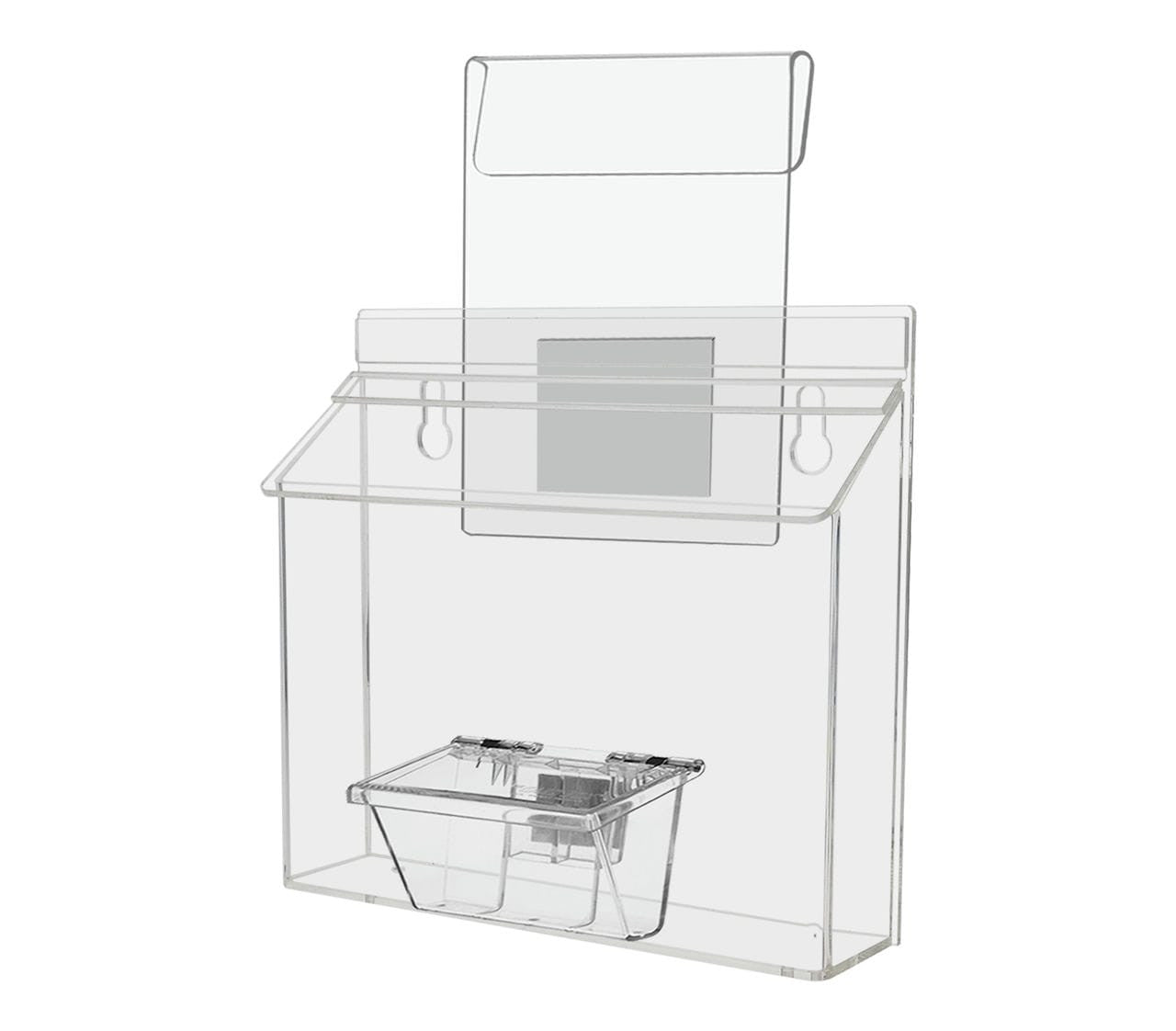 - Includes: Brochure Holder with lid, business card box, window hook, adhesive strips and one “Take One” sticker