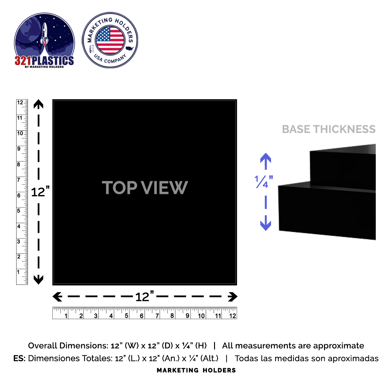 12" Black Acrylic Base for Display Cubes