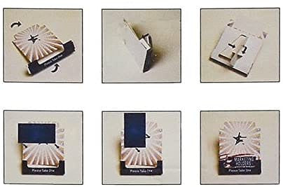 Made from durable card stock, the holder is easily pinned to bulletin boards or affixed to walls, allowing multiple prospective customers access to your contact information, even after the first card is taken. Also freestanding and portable, the card holder can be placed on counters, desks, tables, or other flat surfaces making it an excellent temporary installation for business card distribution at various venues.